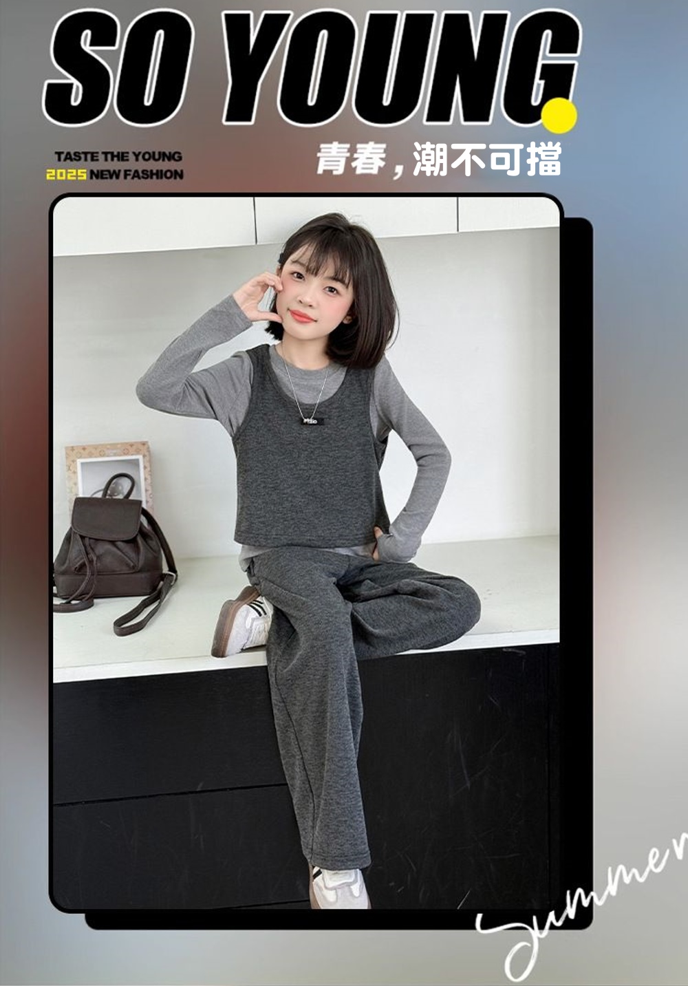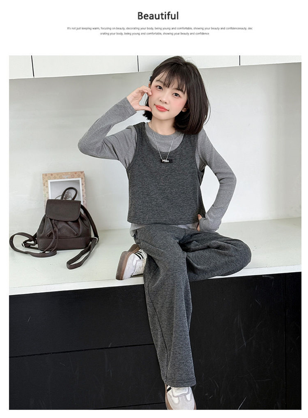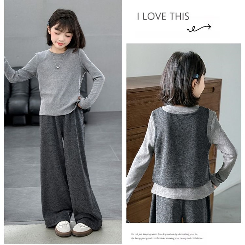 【小衣衫童裝】中大女童秋款三件式休閒背心長袖長褲套裝(1140823)