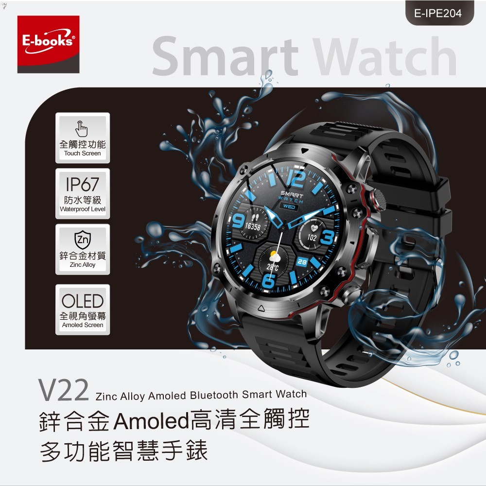 【E-books】V22 鋅合金Amoled高清全觸控多功能智慧手錶
