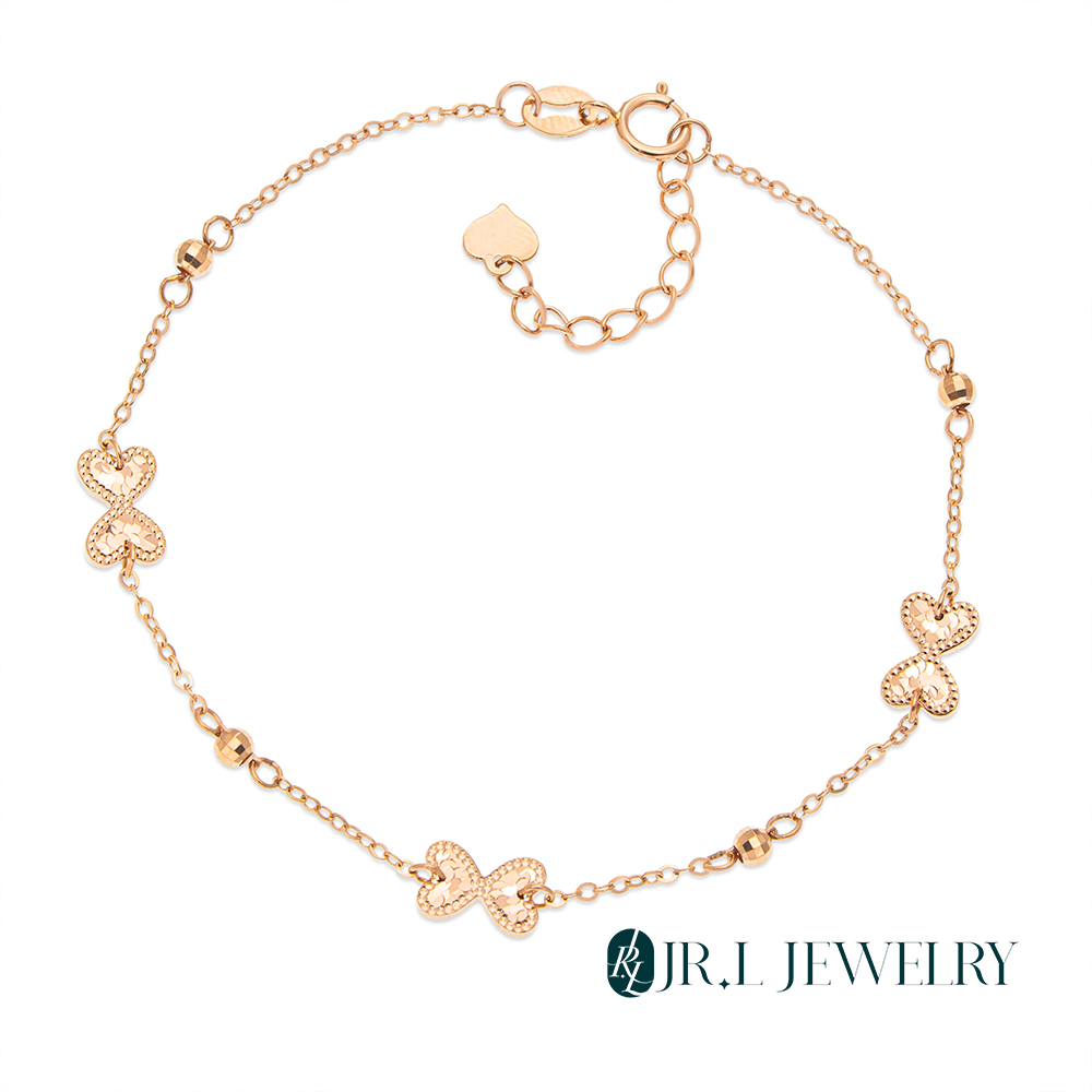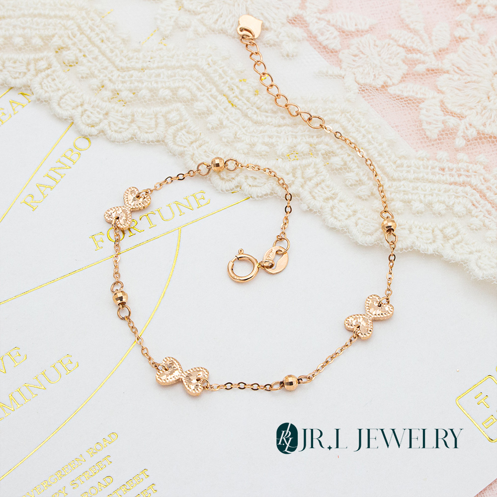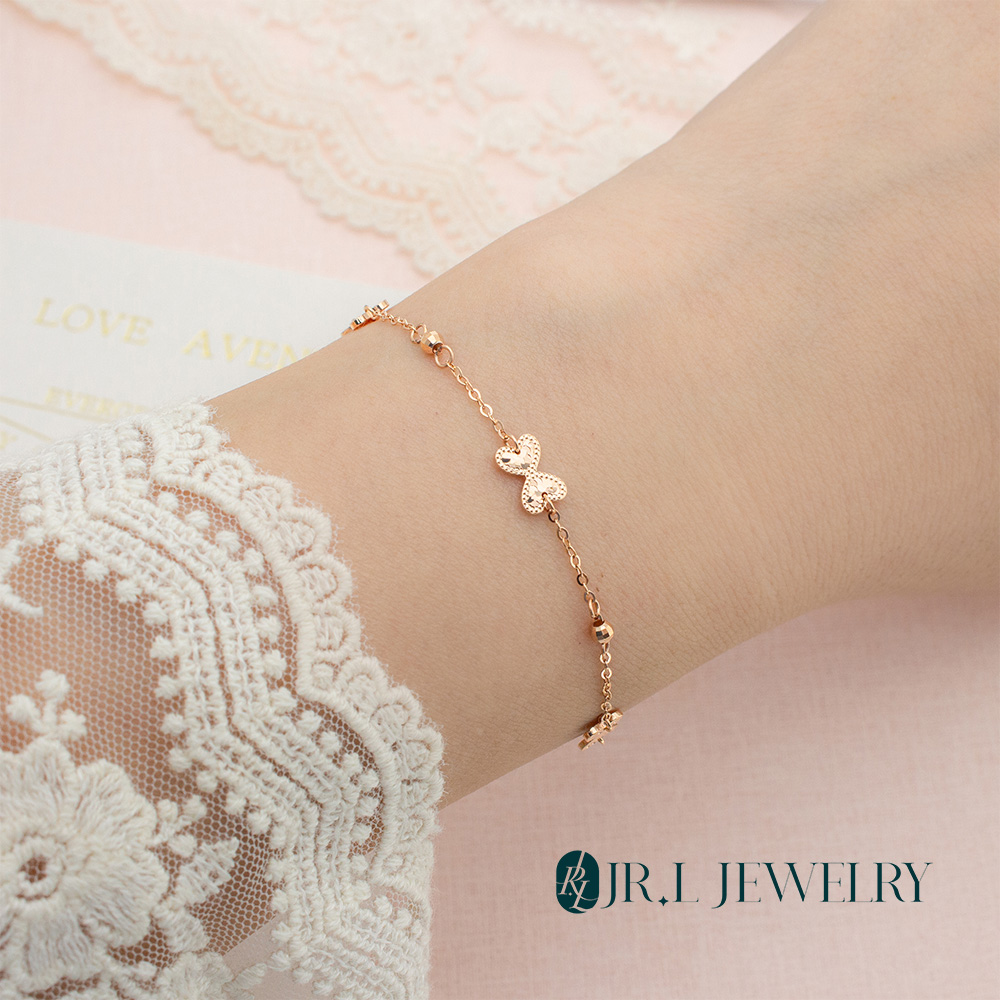 【JR.L金瑞利珠寶】雙11 18K玫瑰金 雙心蝴蝶結K金手鍊(18K玫瑰金手鍊)