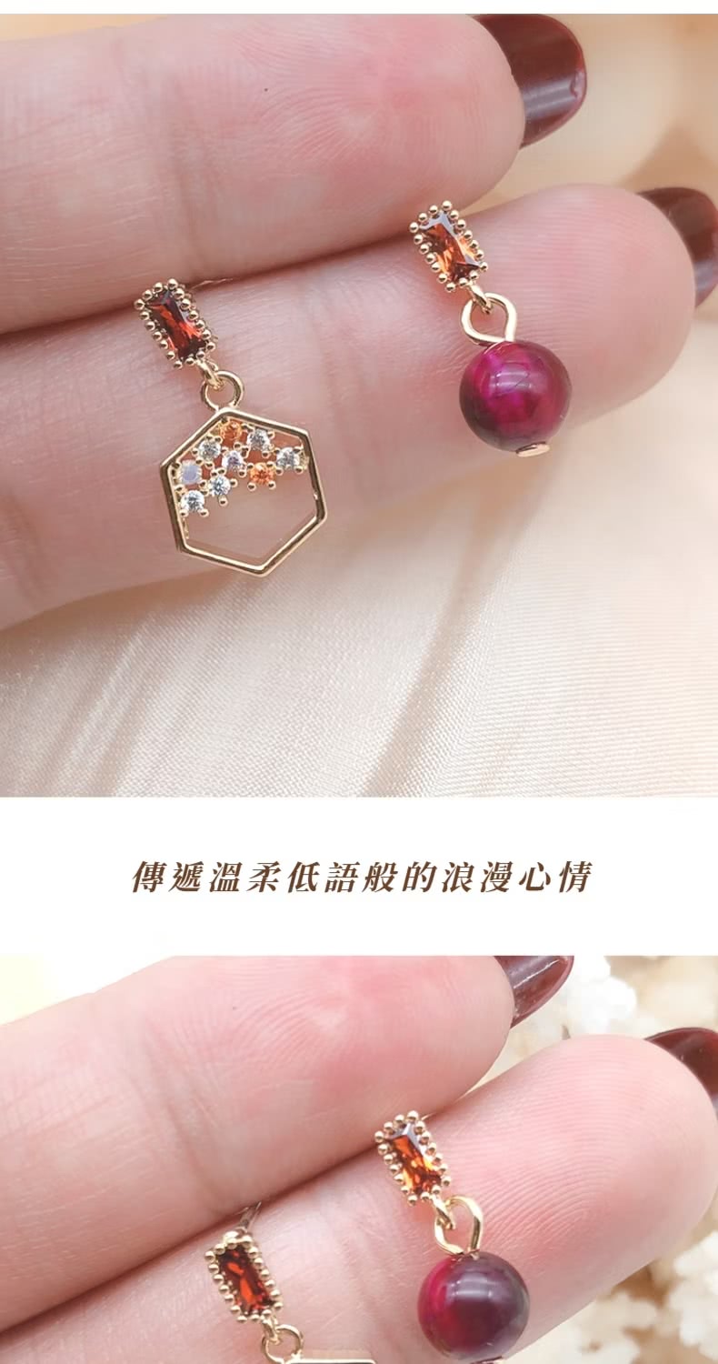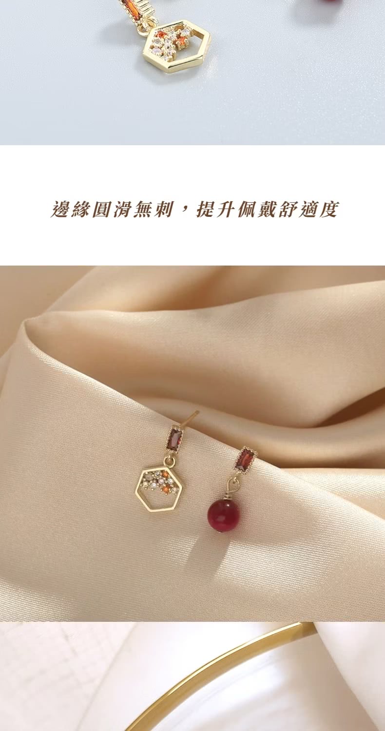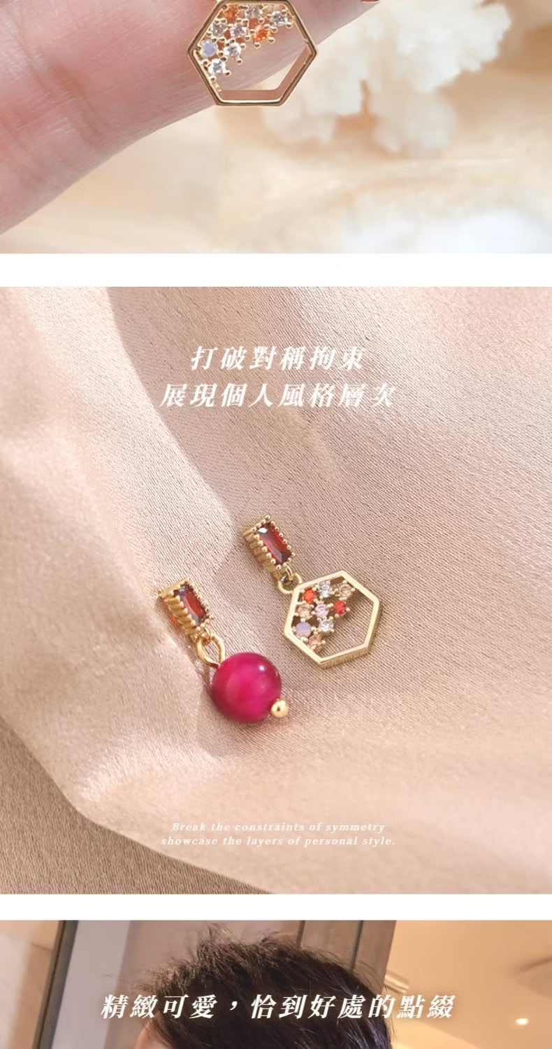 【一粒紅豆】紅豆蜜語不對稱耳環(幾何 耳釘 耳飾 上班族 約會 禮服 紅色 現代古風)