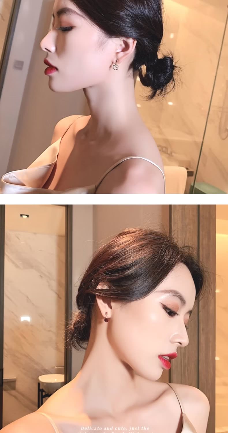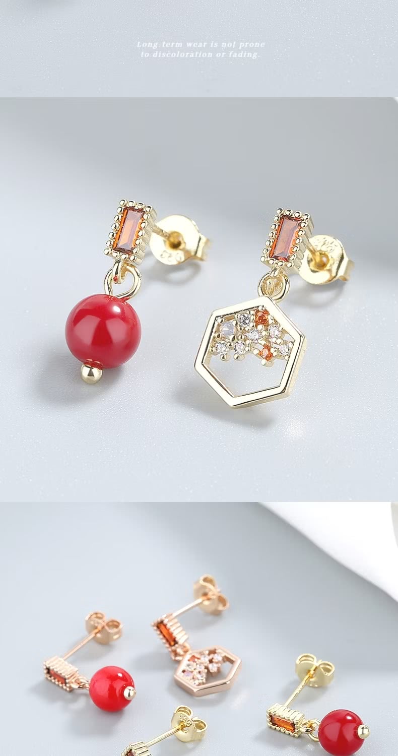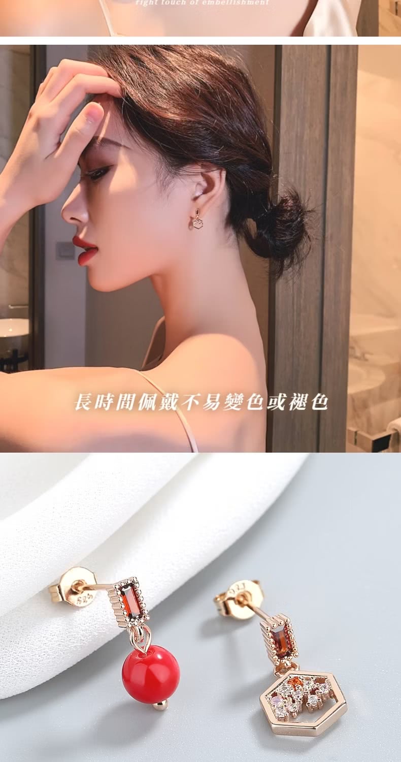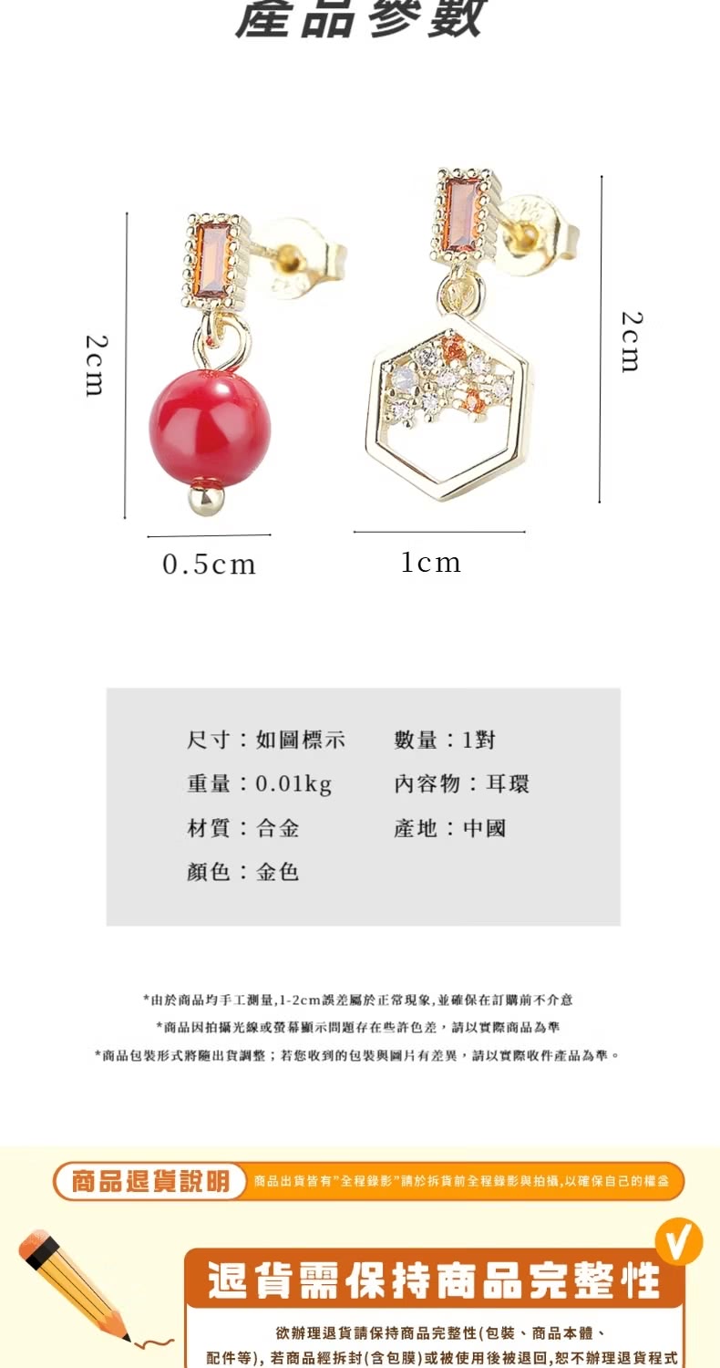 【一粒紅豆】紅豆蜜語不對稱耳環(幾何 耳釘 耳飾 上班族 約會 禮服 紅色 現代古風)