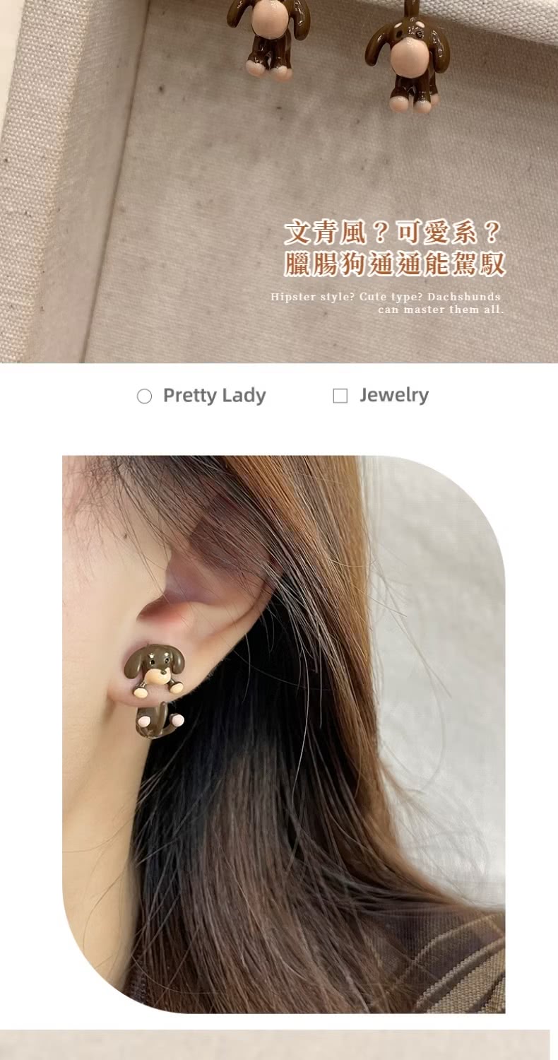 【小眾設計】臘腸狗俏皮耳環(兒童 卡通 耳飾 耳墜 飾品 耳針 耳釘 首飾 耳環 配件 禮物)
