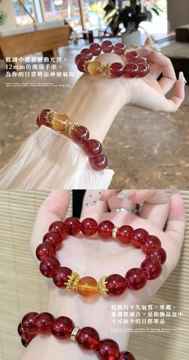 【高級小眾】仿瑪瑙手串12mm(水晶手鍊 女士 平安扣 手珠 手鏈 手環 首飾 開運 閨蜜)