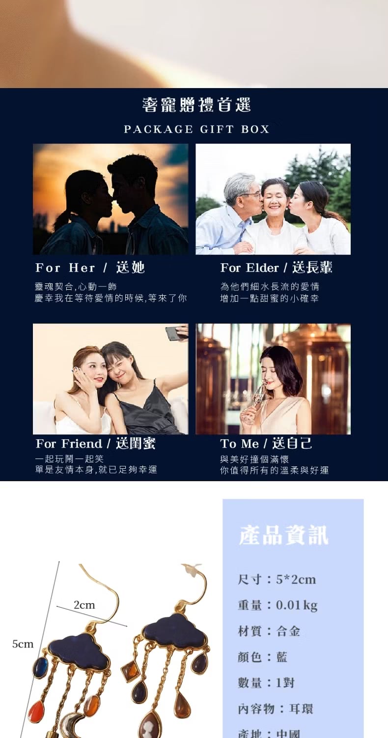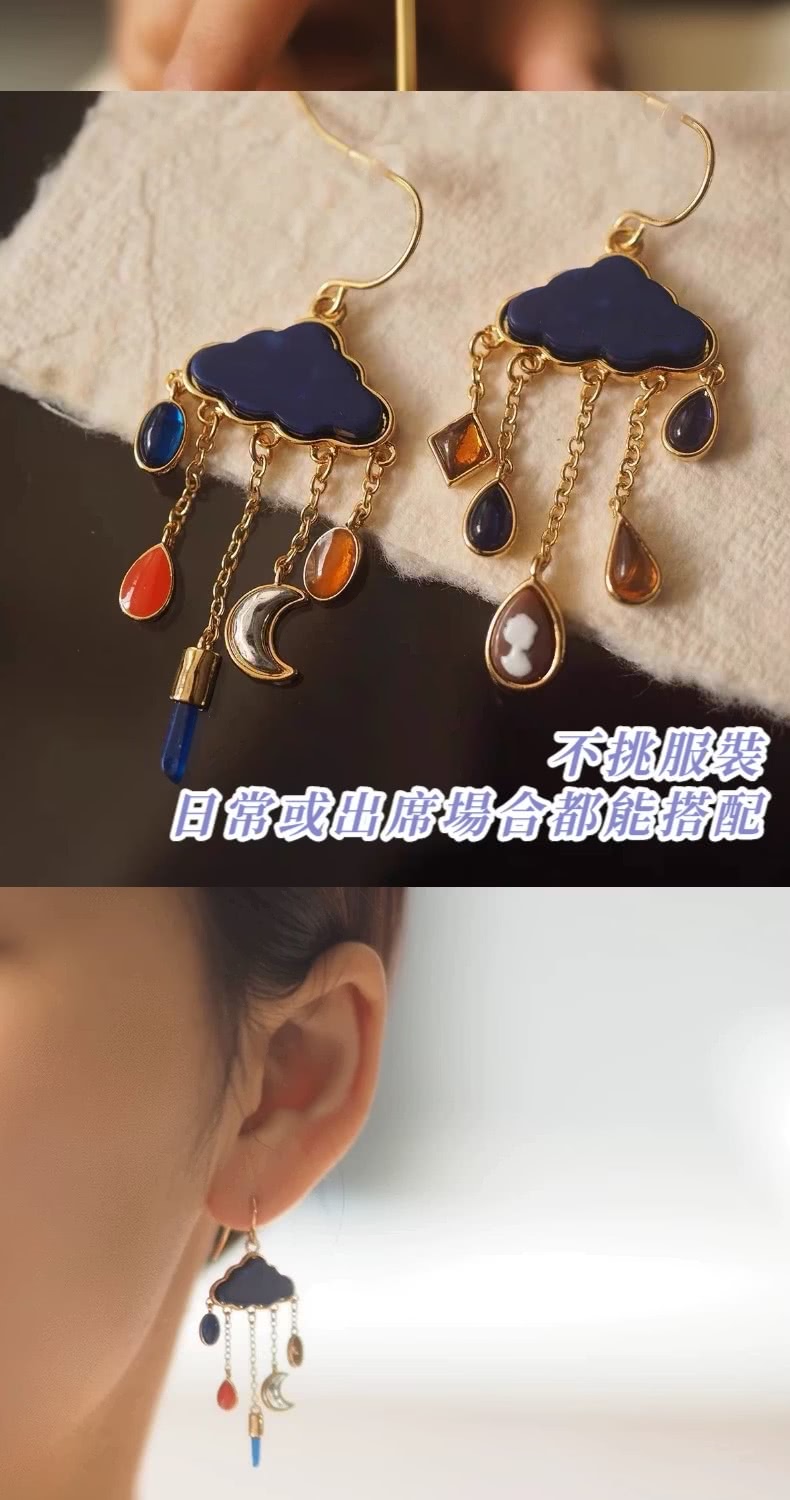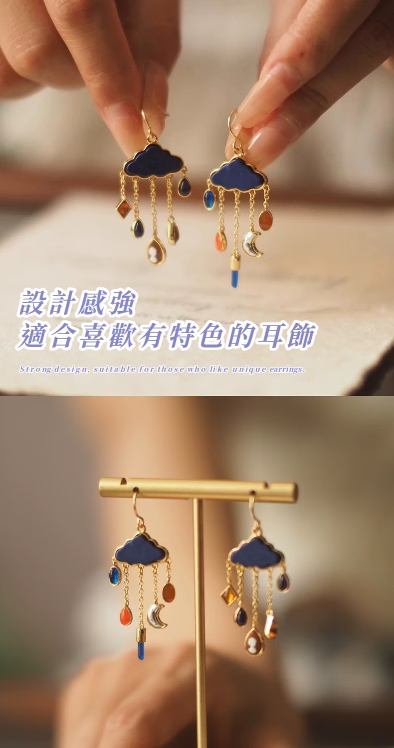 【天晴安好】雲星月寶石流蘇耳環1對(高級 設計 耳飾 耳墜 飾品 耳針 耳釘 首飾 配件 禮物)