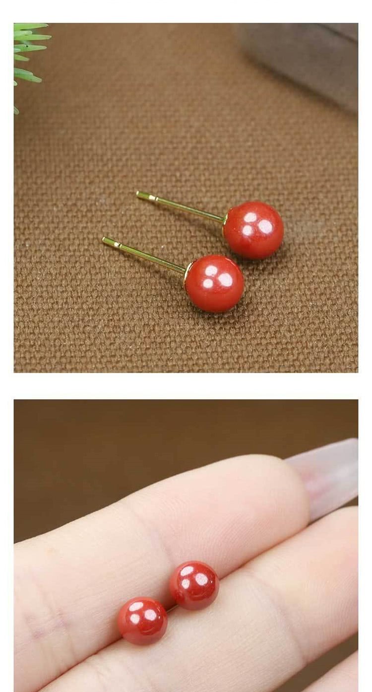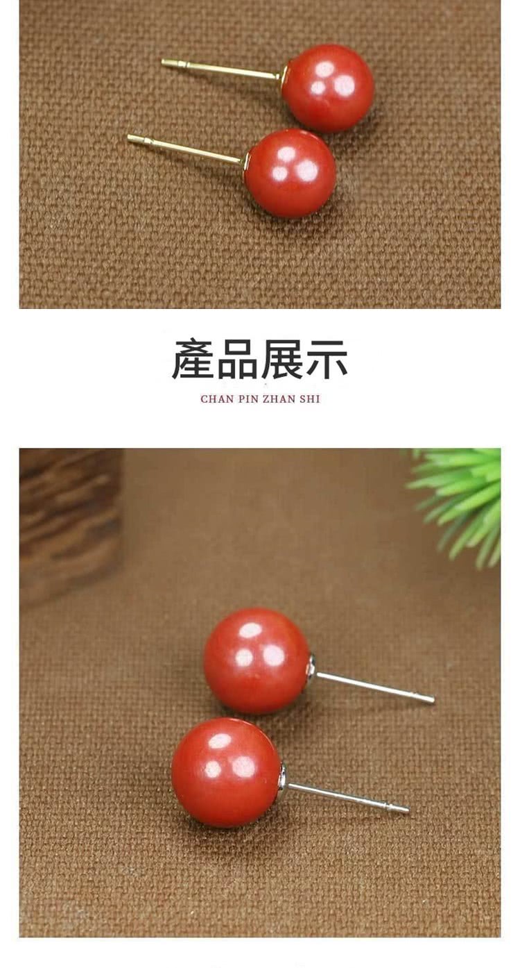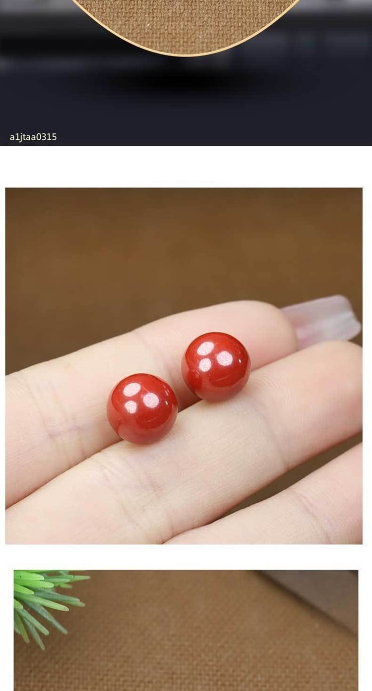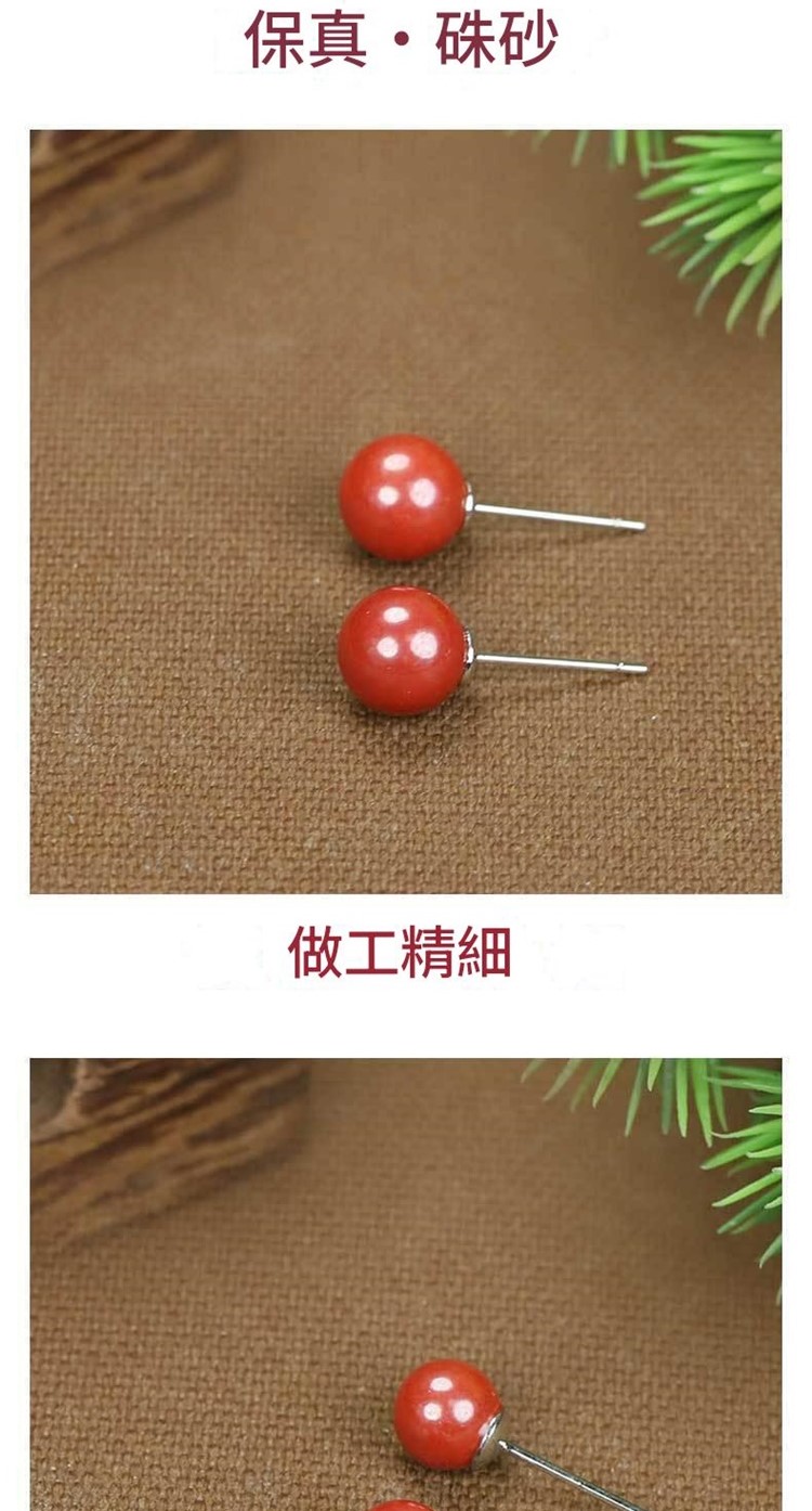 【巴黎精品】現貨+預購 硃砂耳環925純銀耳針銀針耳飾轉運淨化招財開運(高級感6/8/10mm硃砂女飾品2色a1jt4)