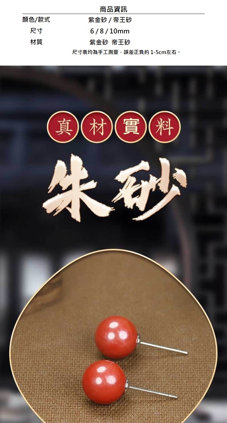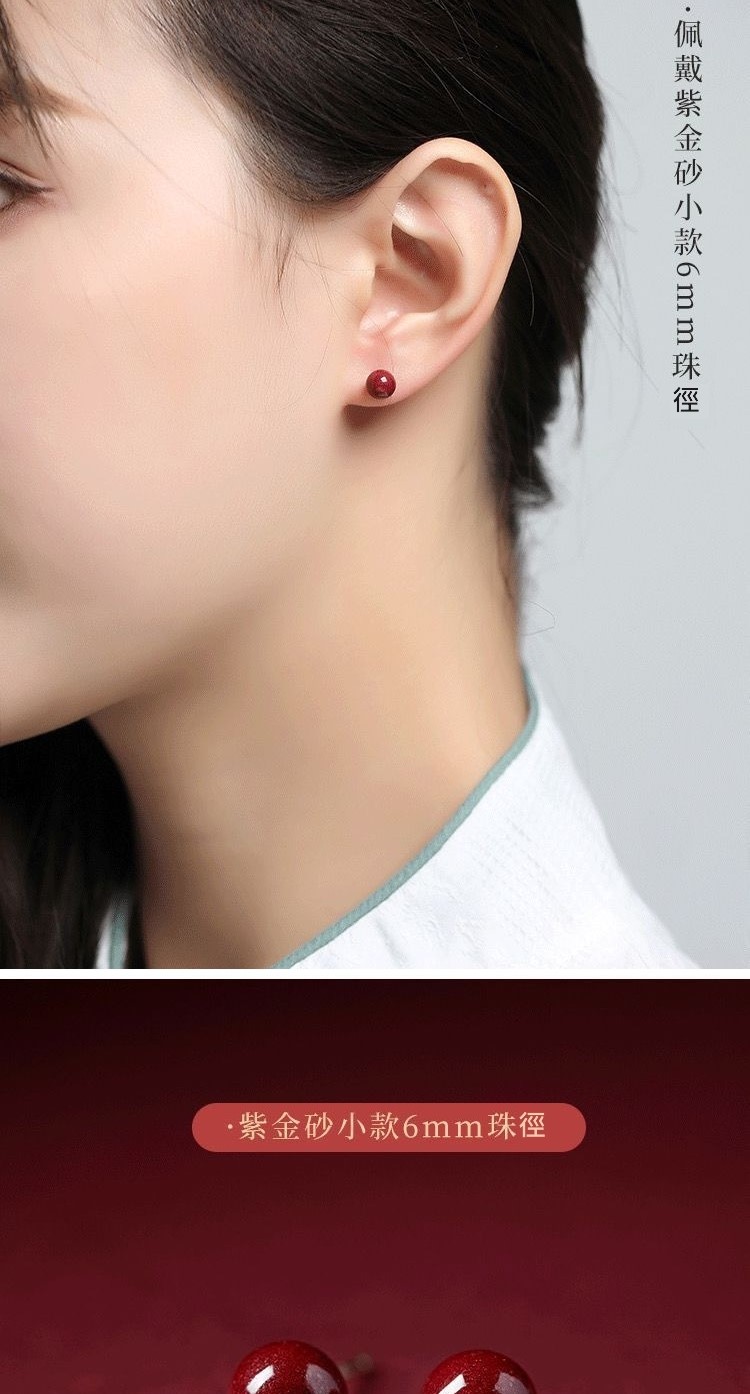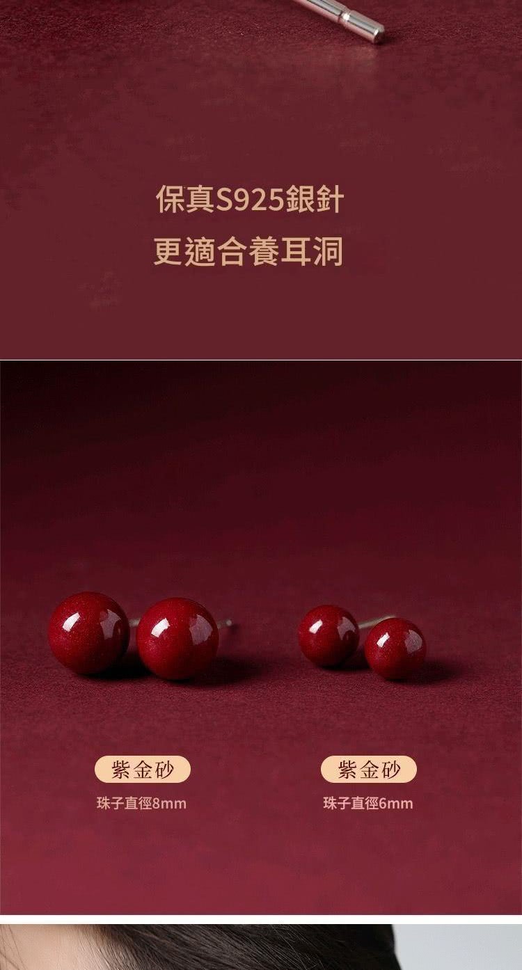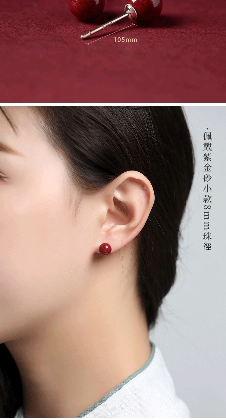 【巴黎精品】現貨+預購 硃砂耳環925純銀耳針銀針耳飾轉運淨化招財開運(高級感6/8/10mm硃砂女飾品2色a1jt4)