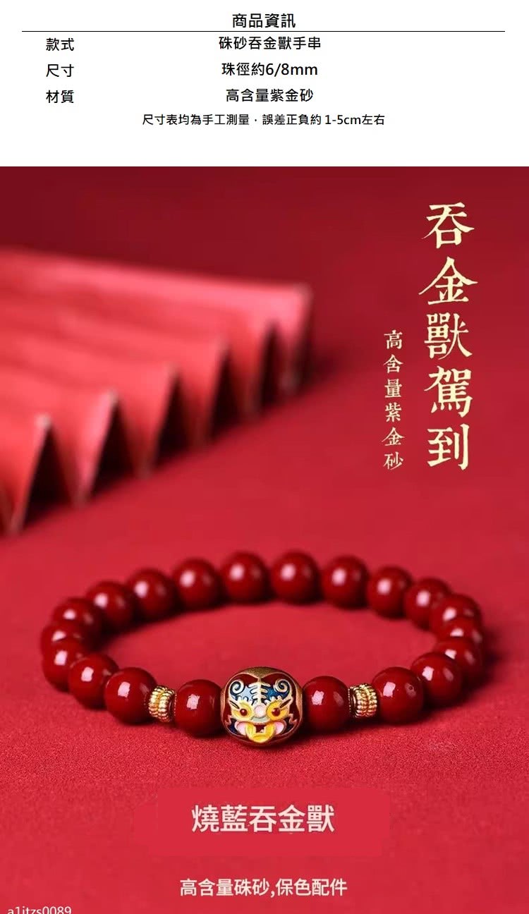 【巴黎精品】現貨+預購 硃砂手鍊朱砂手珠手串擋煞防小人轉運淨化招財開運(吞金獸6/8mm女飾品2款a1jt66)