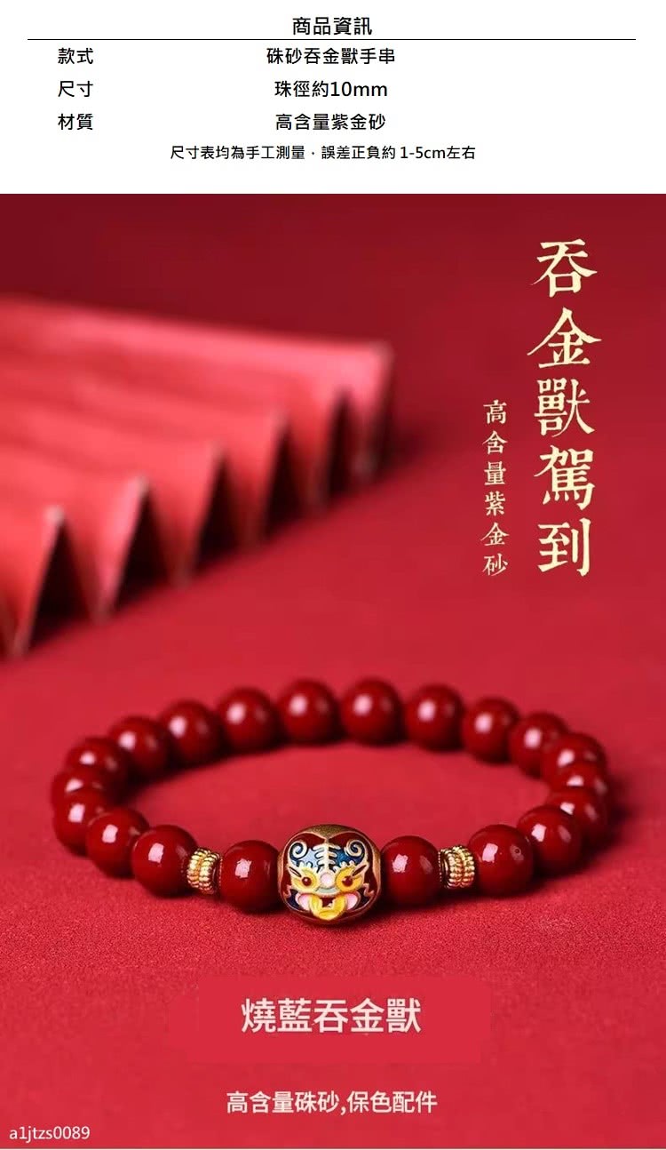 【巴黎精品】現貨+預購 硃砂手鍊朱砂手珠手串擋煞防小人轉運除穢淨化招財開運(吞金獸10mm男女飾品a1jt67)