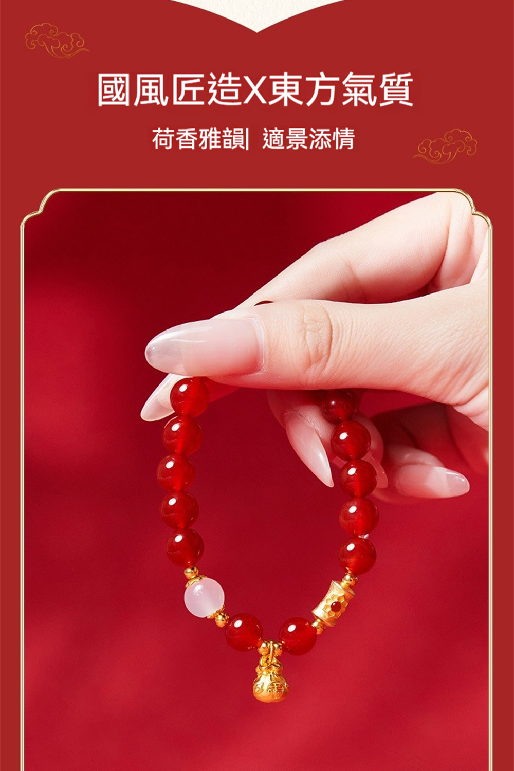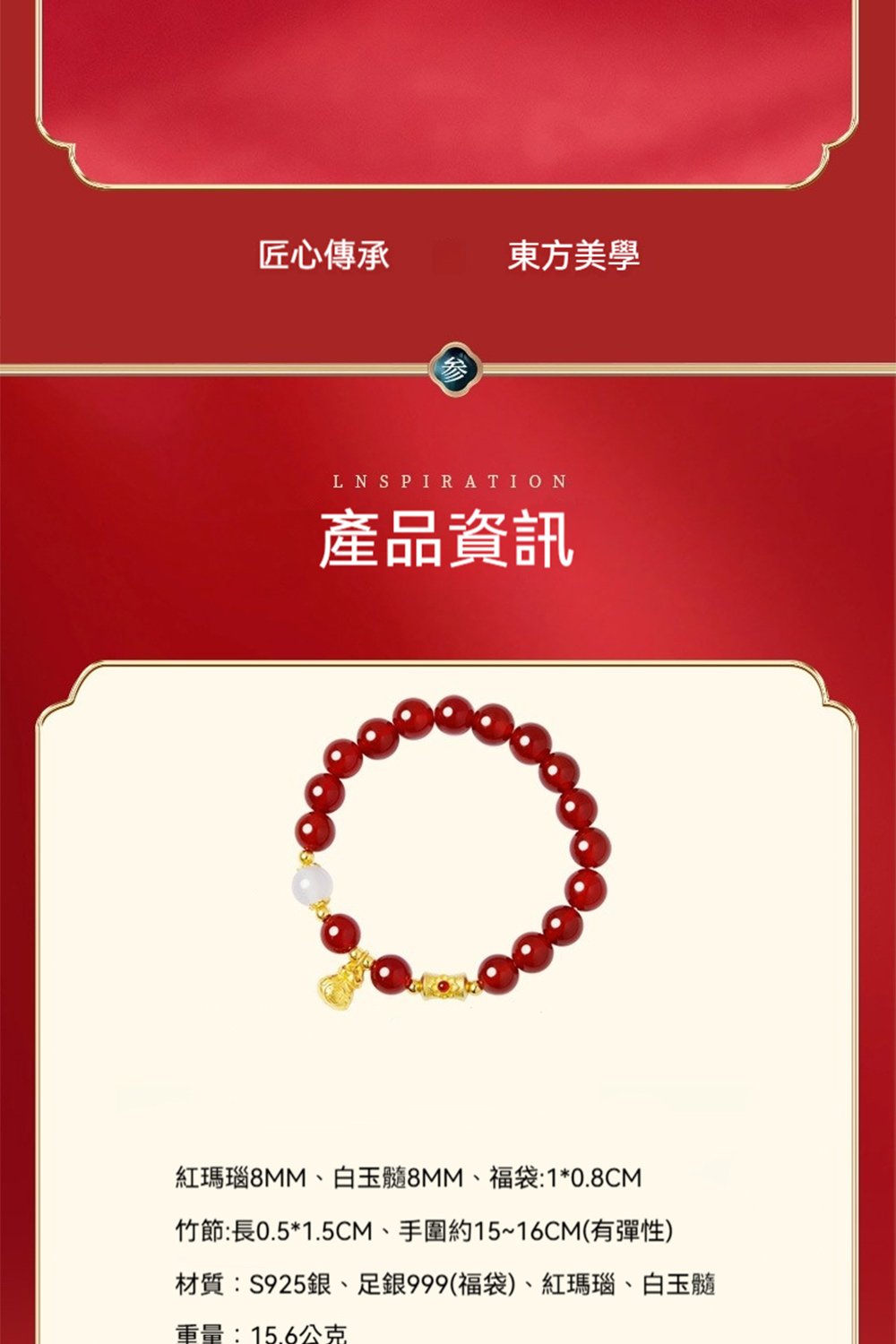 ✨ 商品尺吋:紅瑪瑙8MM、白玉髓8MM、福袋:1*0.8CM、竹節:長0.5*1.5CM、手圍約15~16CM(有彈性)