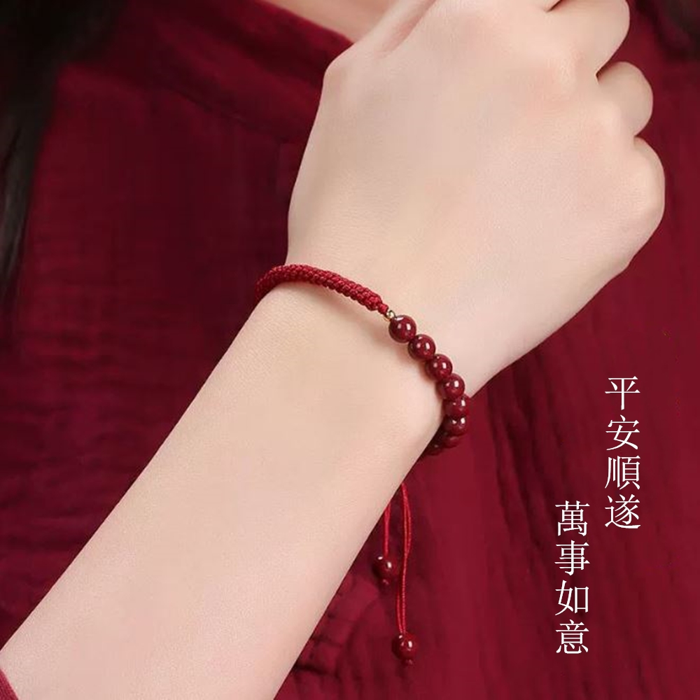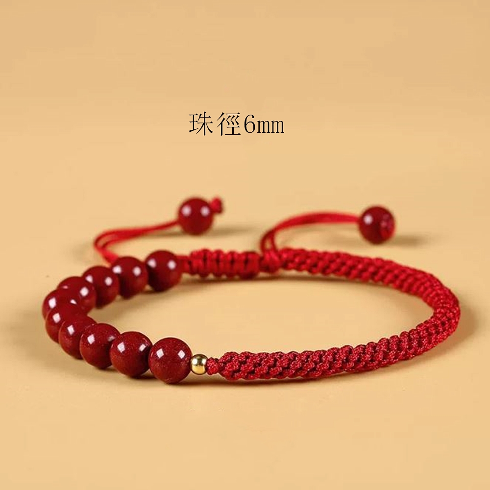 【Penny珮妮】硃砂 可調節手工編織手繩手鍊6mm(母親節 情人節 交換禮物 新婚 新年 尾牙)