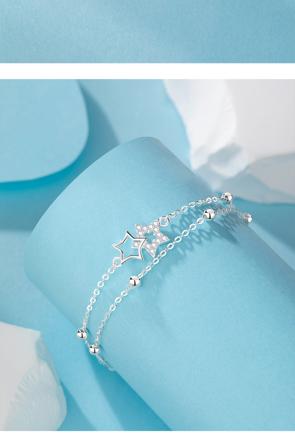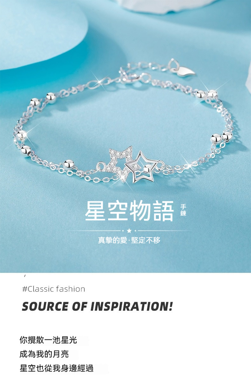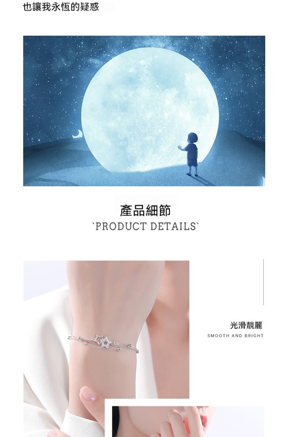 【MoonDy】雙11 手鍊 手環 氣質手鍊 純銀手鍊 星星月亮手鍊 鋯石手鍊 生日禮物