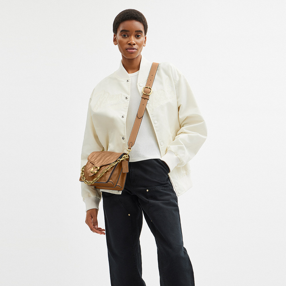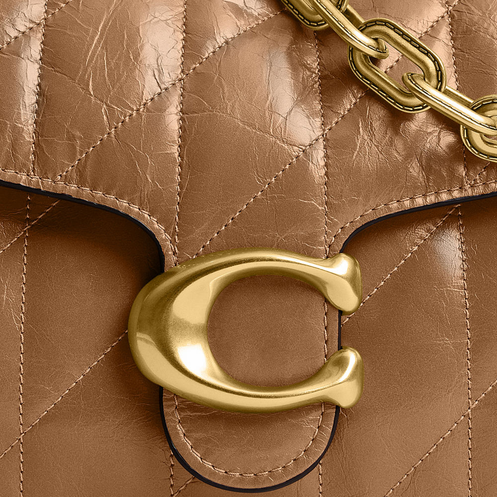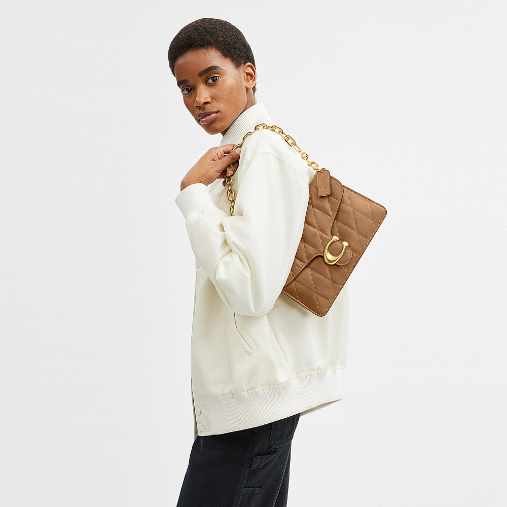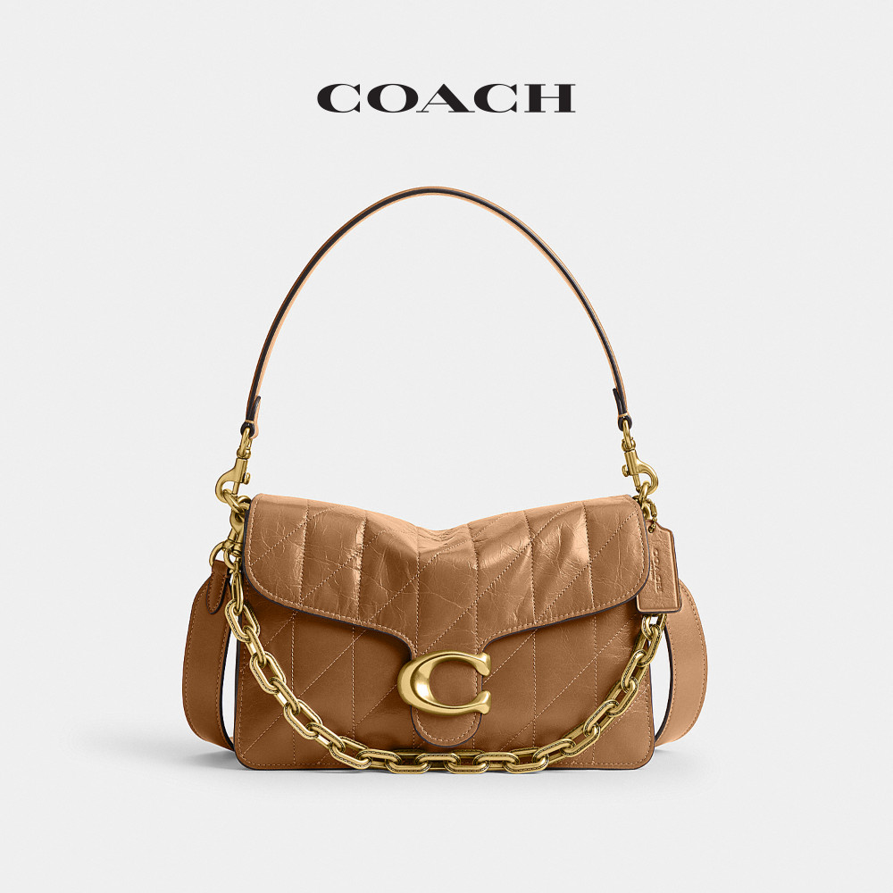 【COACH】蔻馳官方直營 CHAIN TABBY 絎縫裝飾鏈條單肩手袋 單肩包 肩背包-B4/蜂蜜棕色(CAF55)