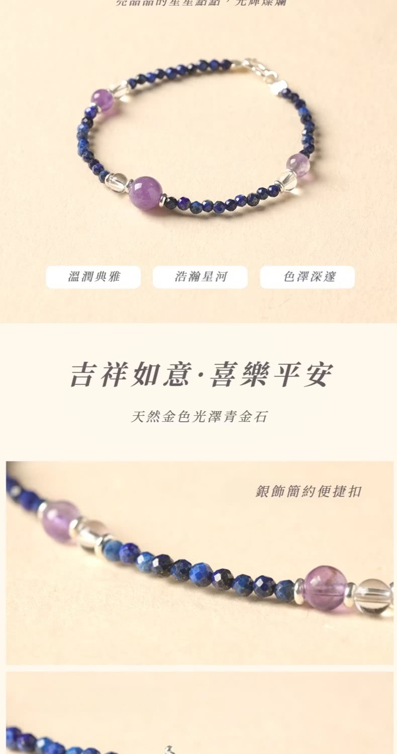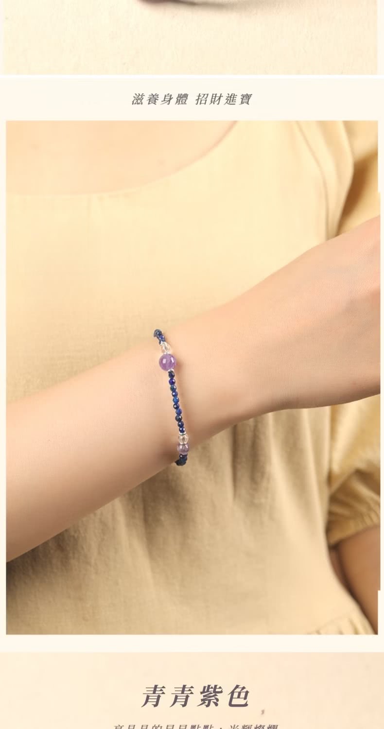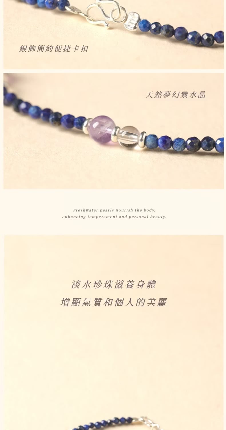 【青青紫衿】青金石手鍊(天然 水晶手串 首飾 女 古風)
