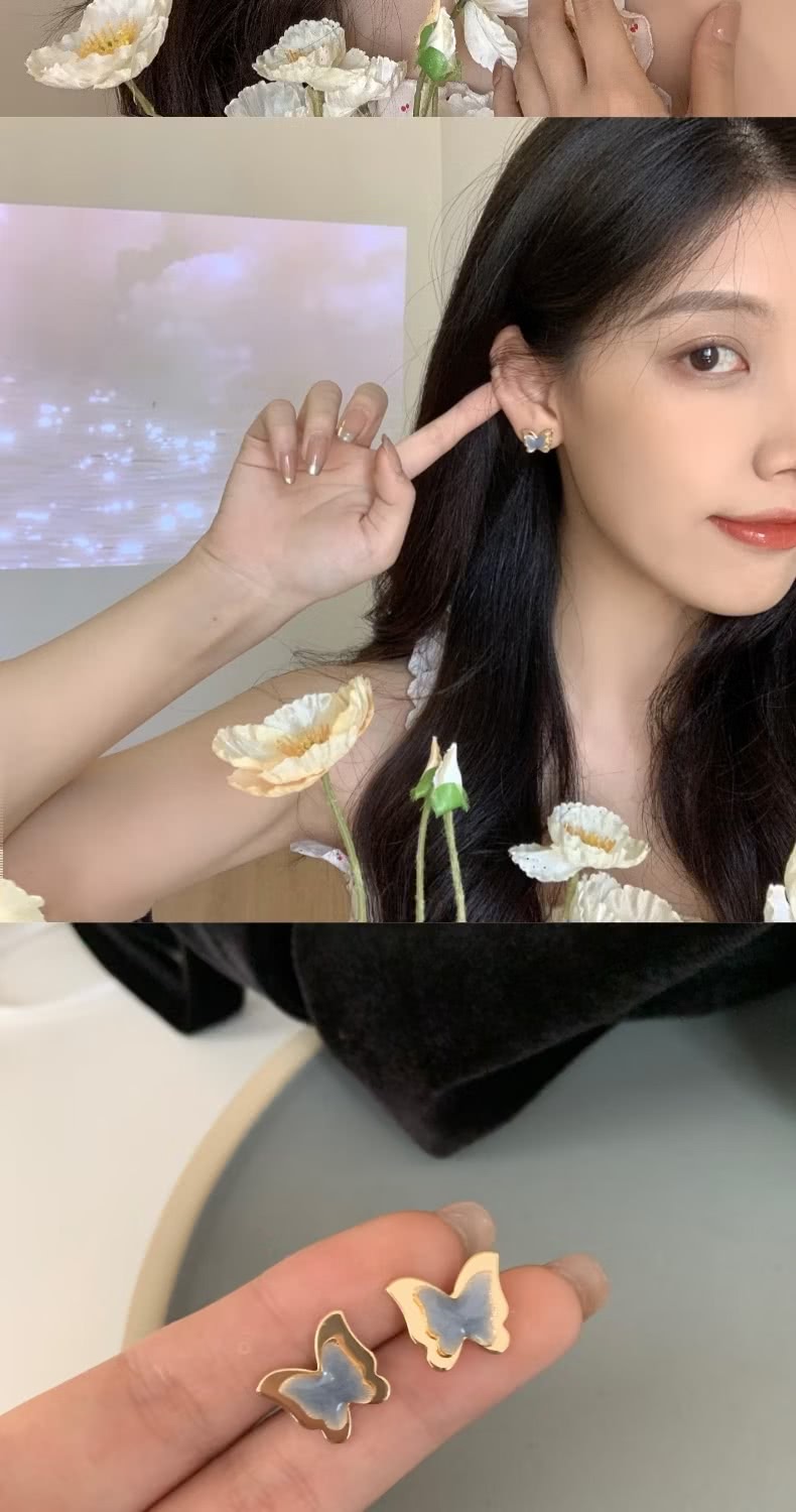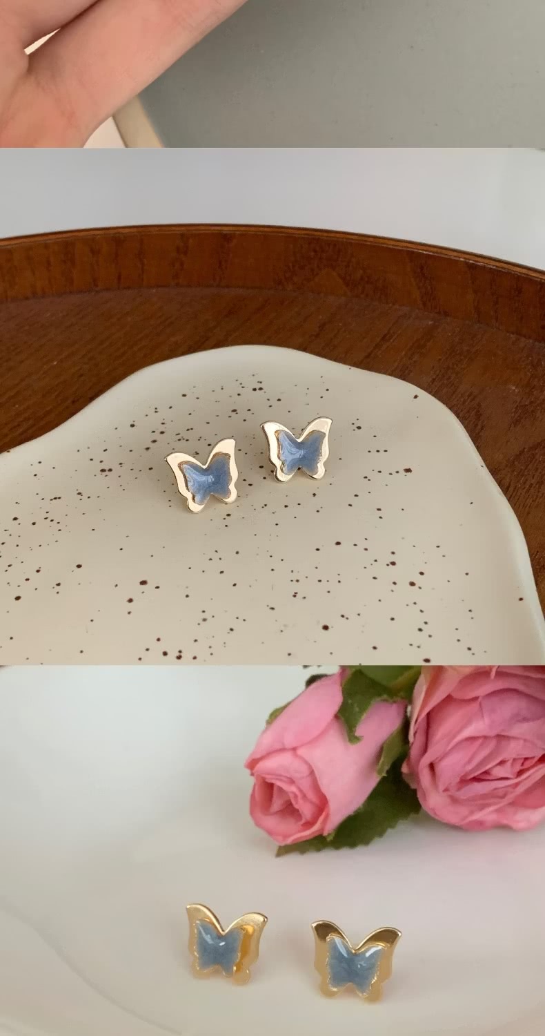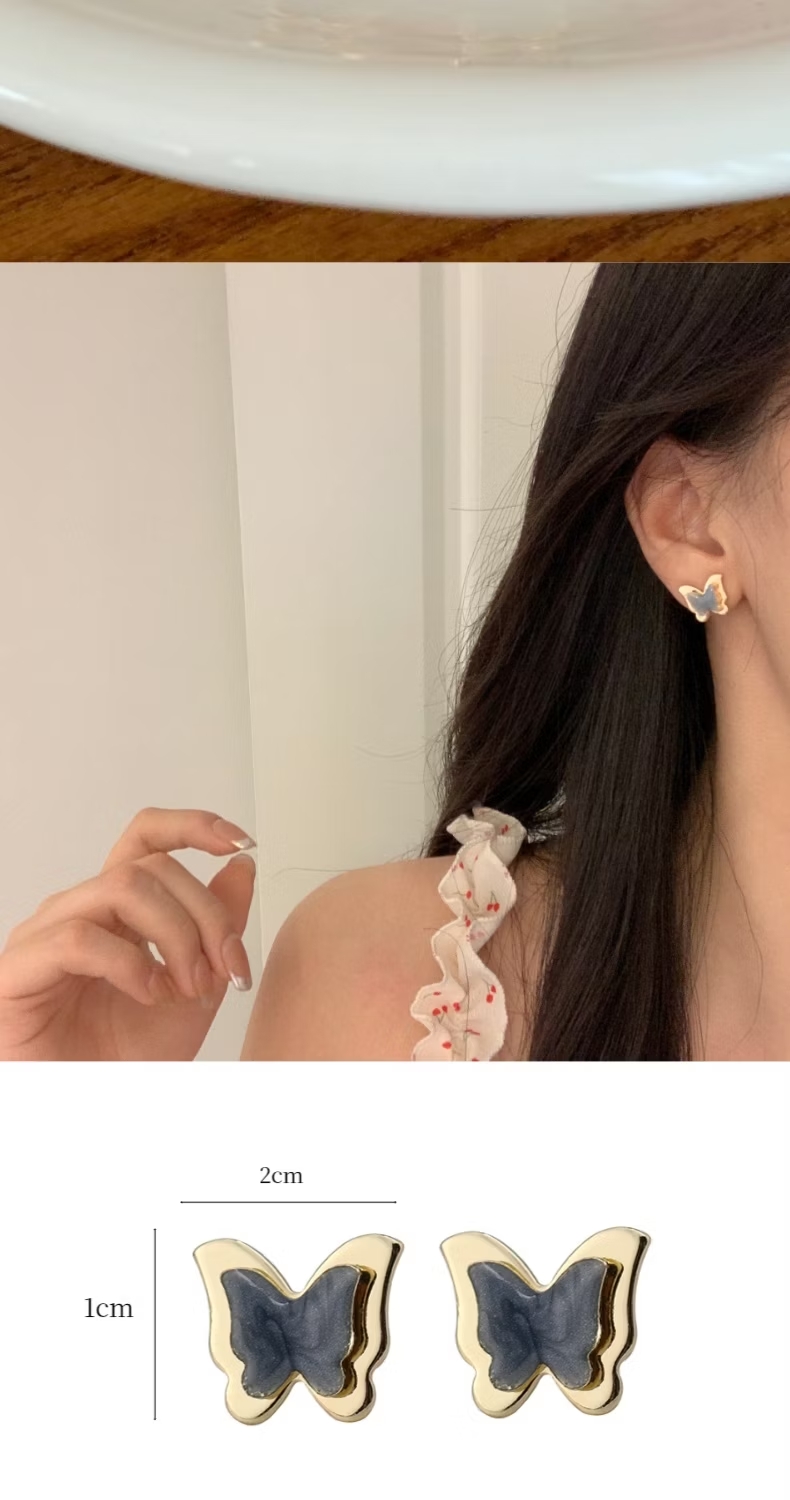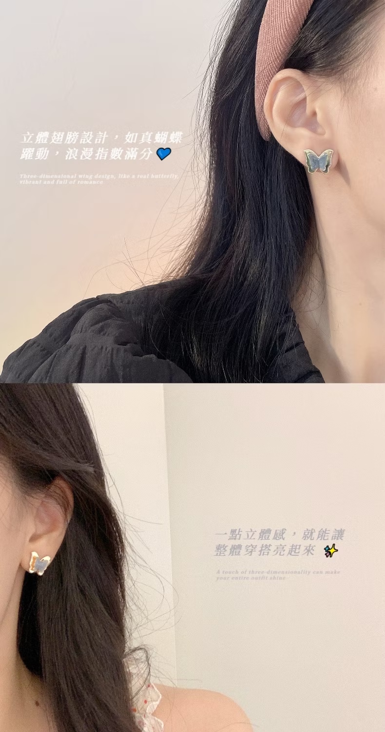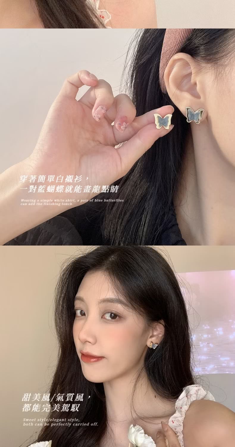 【港風復古】立體藍色蝴蝶耳環1對(七夕 情人節 生日 飾品 耳釘 耳飾 耳墜 禮物)