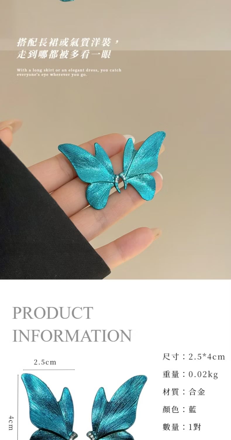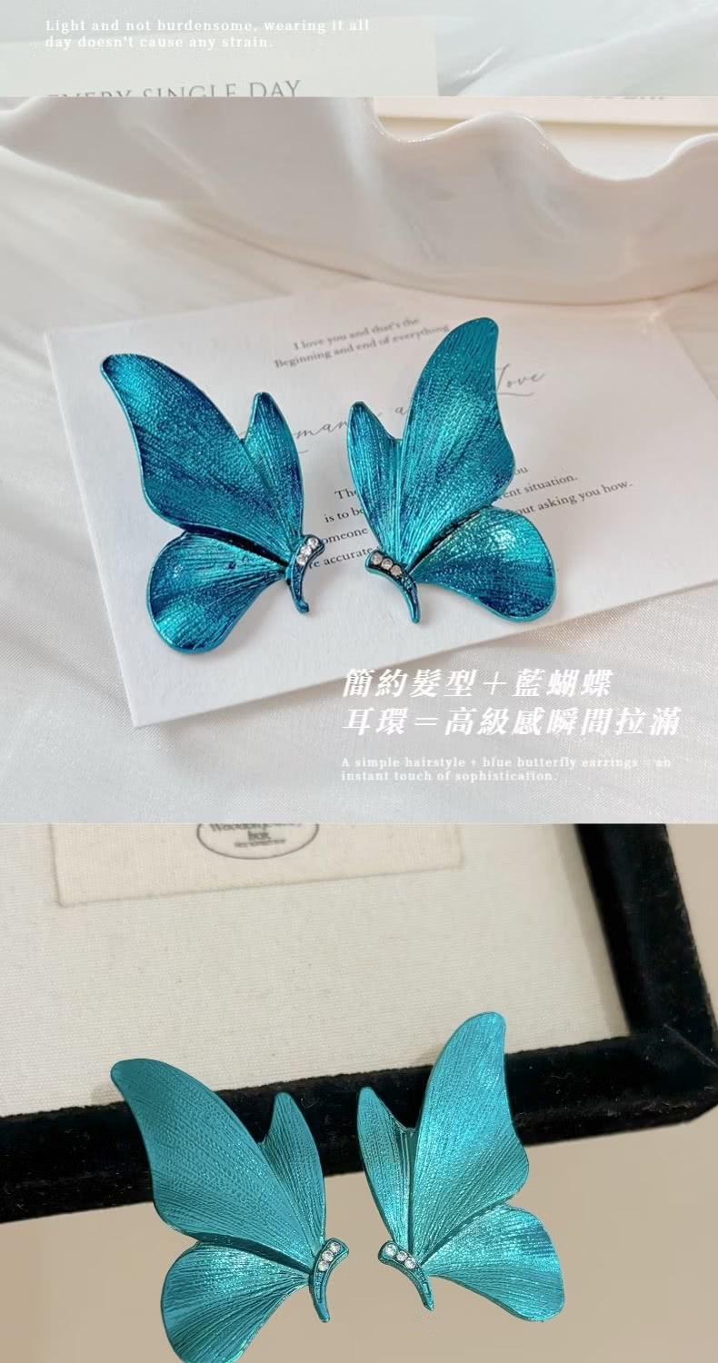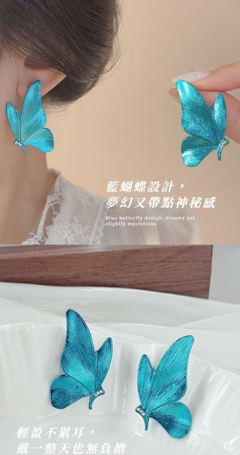 【夢幻蝶仙】超仙藍蝴蝶耳環1對(浮誇 耳墜 耳飾 耳針 耳釘 首飾 情人節 禮物)