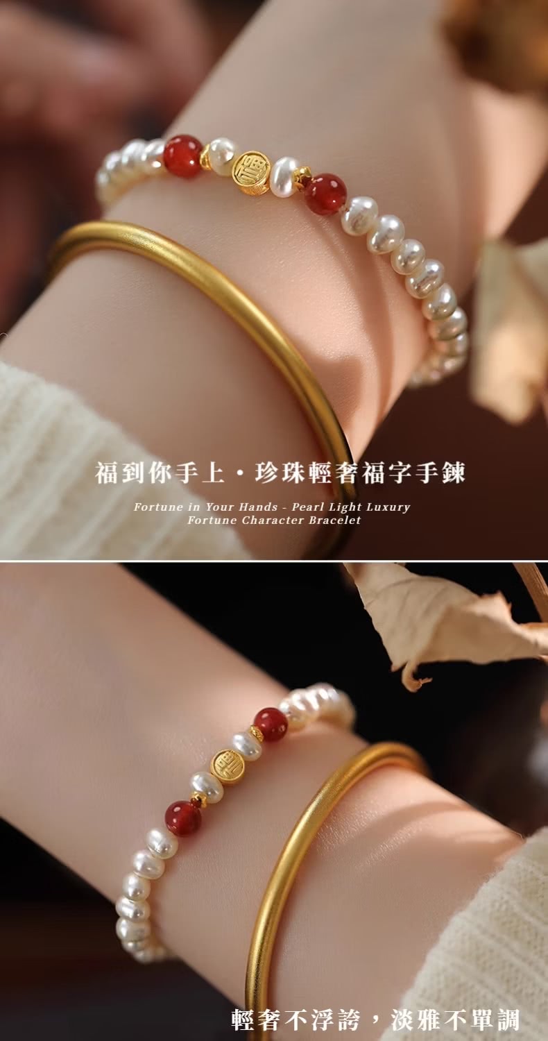 【溫潤飾品】福字淡水珍珠輕奢串開運手鍊(幸運手環 手珠 吉祥 開運飾品 順心 禮物 好運勢)