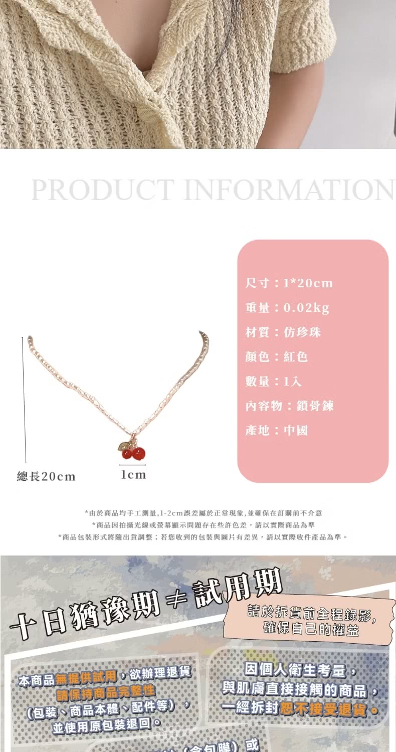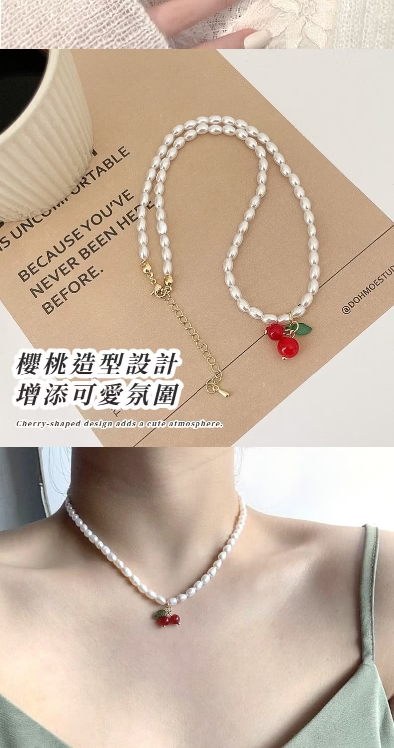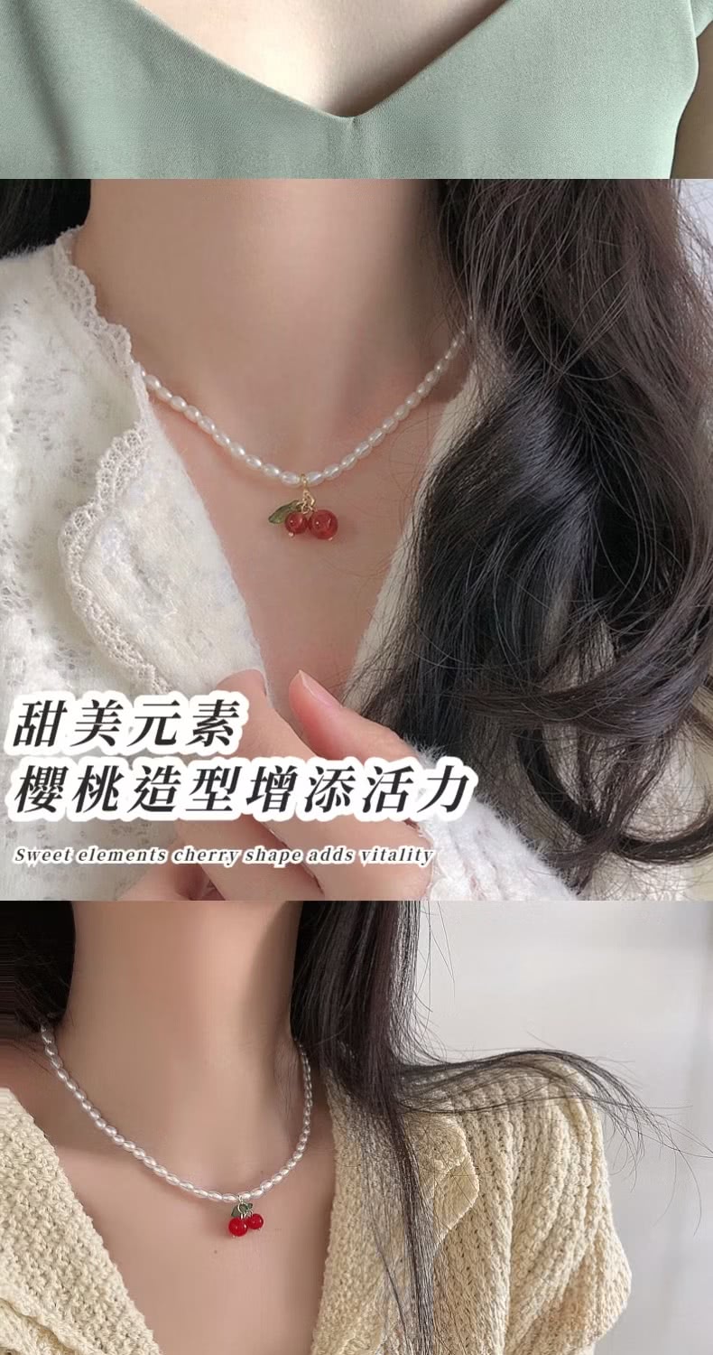 【百搭單品】韓系珍珠櫻桃鎖骨鍊(七夕 情人節 疊戴項鍊 飾品 頸鏈 首飾 禮物)