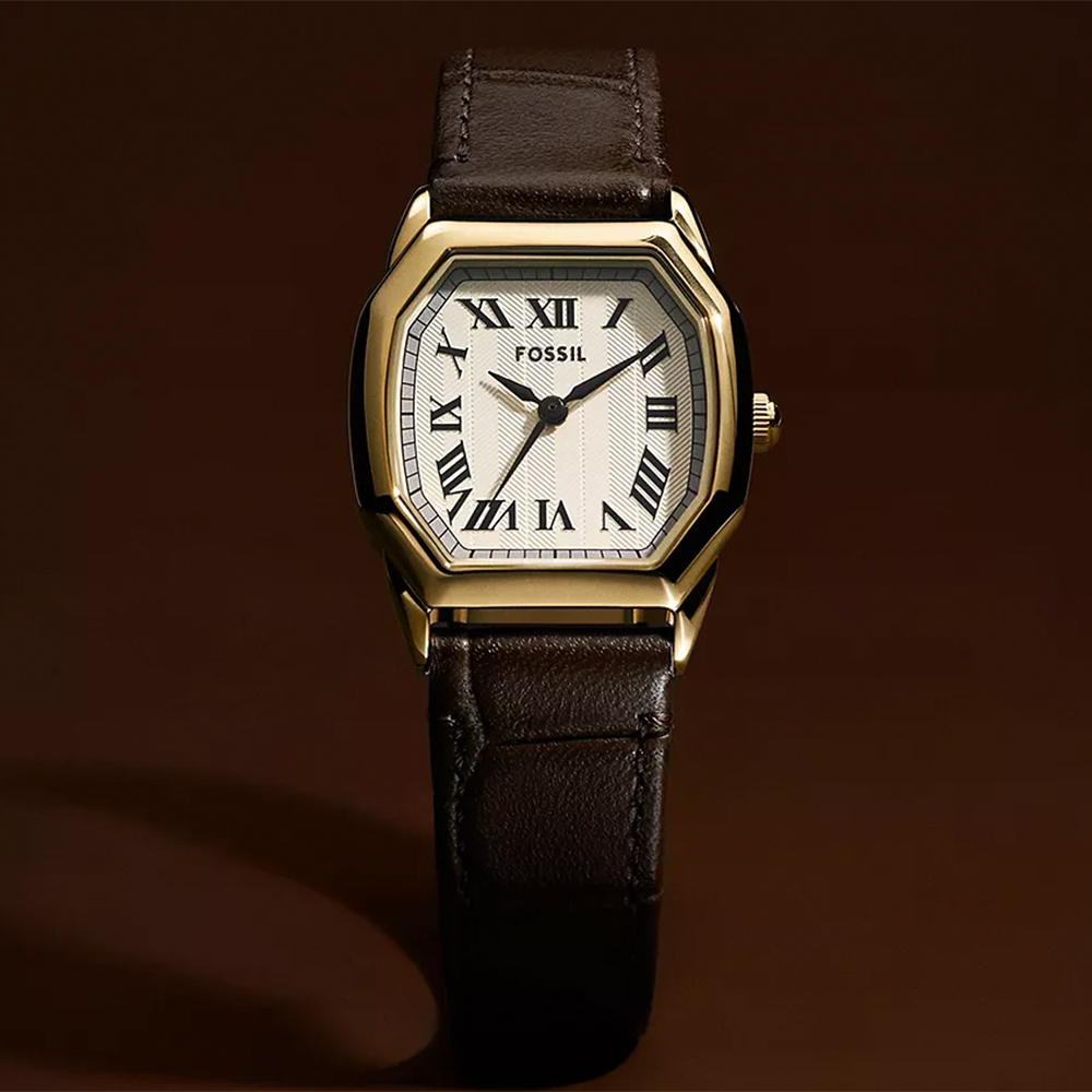 Harlow 系列以小巧八角形錶殼結合溫潤棕色調,展現低調而高雅的品味