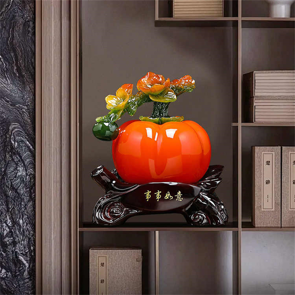 【超微米】事事如意柿子擺件 招財客廳玄關工藝品 博古架酒櫃裝飾品 搬新家喬遷禮物(柿子擺件 加大號)