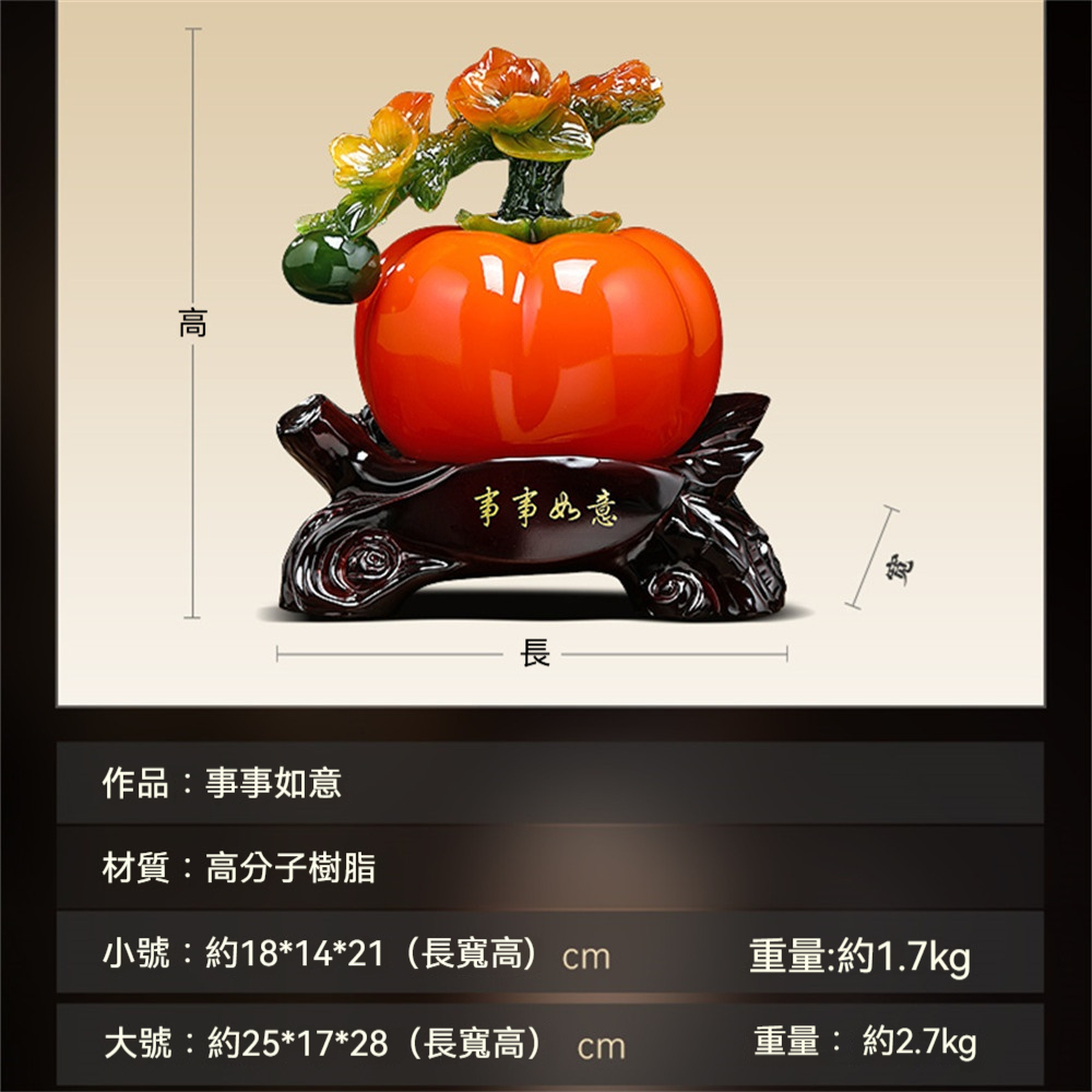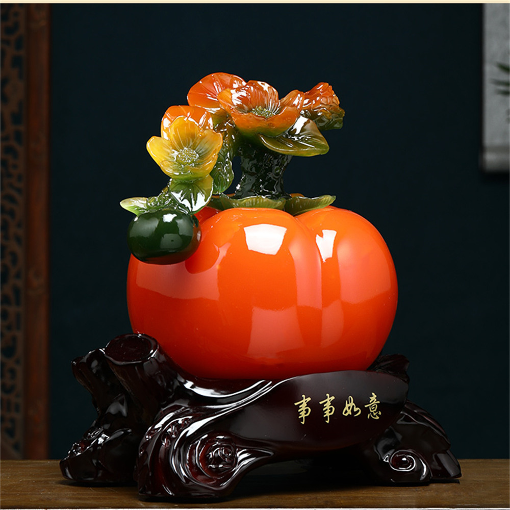 【超微米】事事如意柿子擺件 招財客廳玄關工藝品 博古架酒櫃裝飾品 搬新家喬遷禮物(柿子擺件 小號)