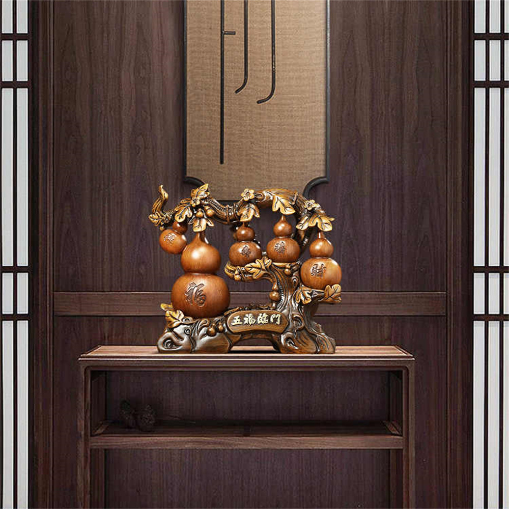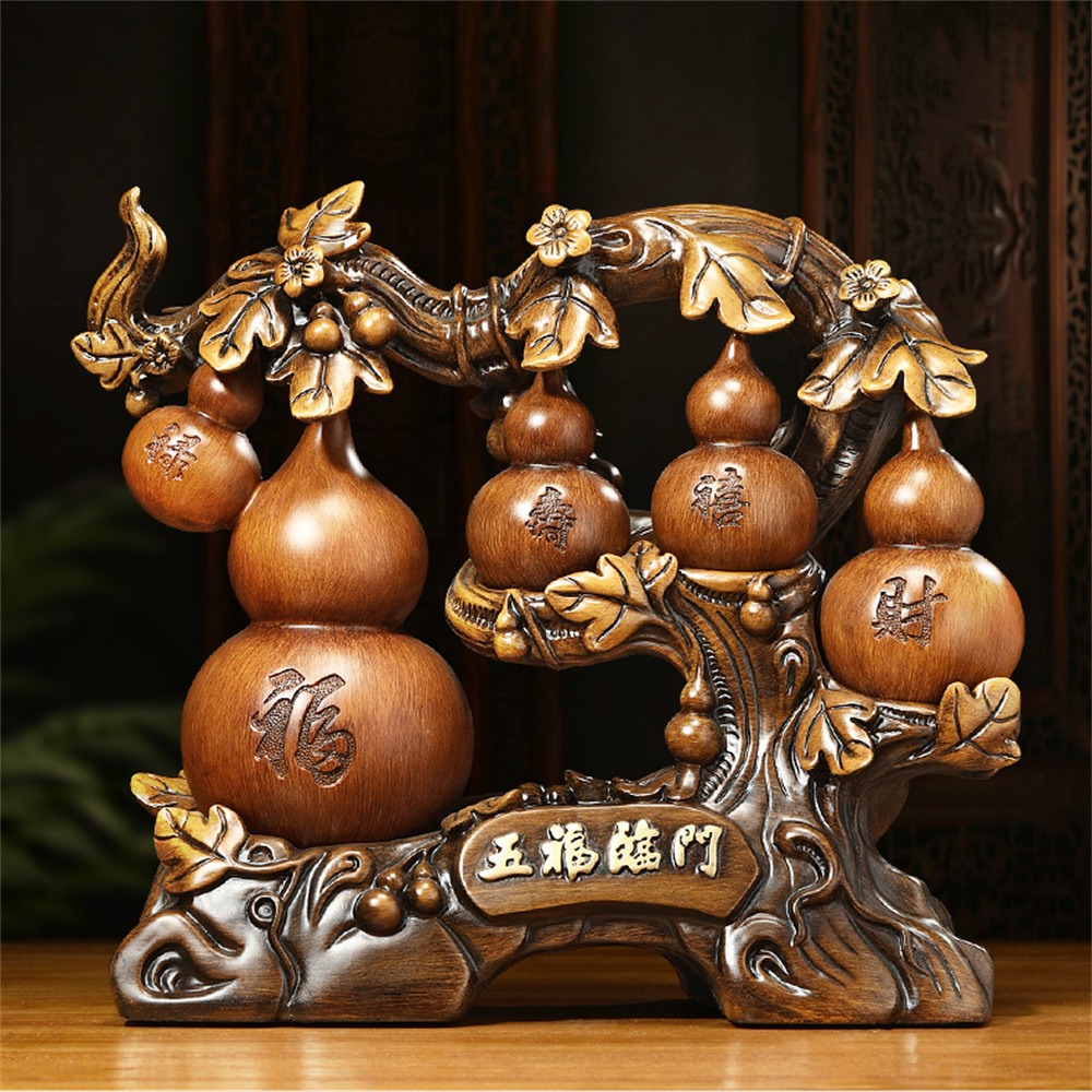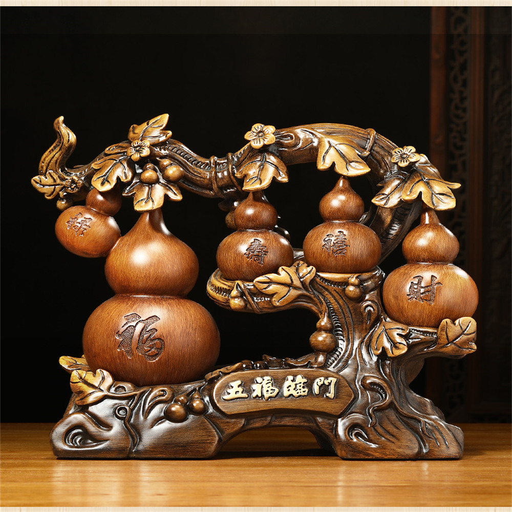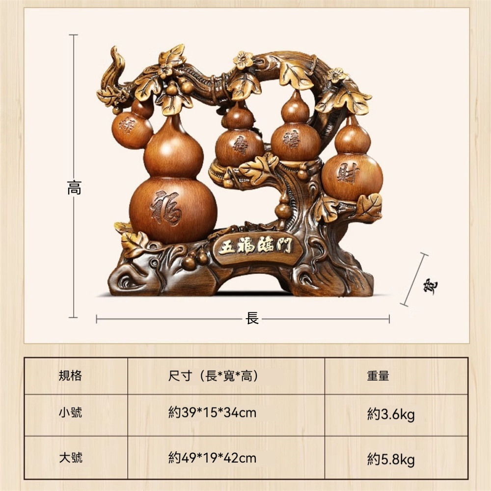 【超微米】五福臨門招財葫蘆擺件 家居客廳擺飾 工藝品 酒櫃電視櫃裝飾品 送禮喬遷禮品(葫蘆擺件39cm)