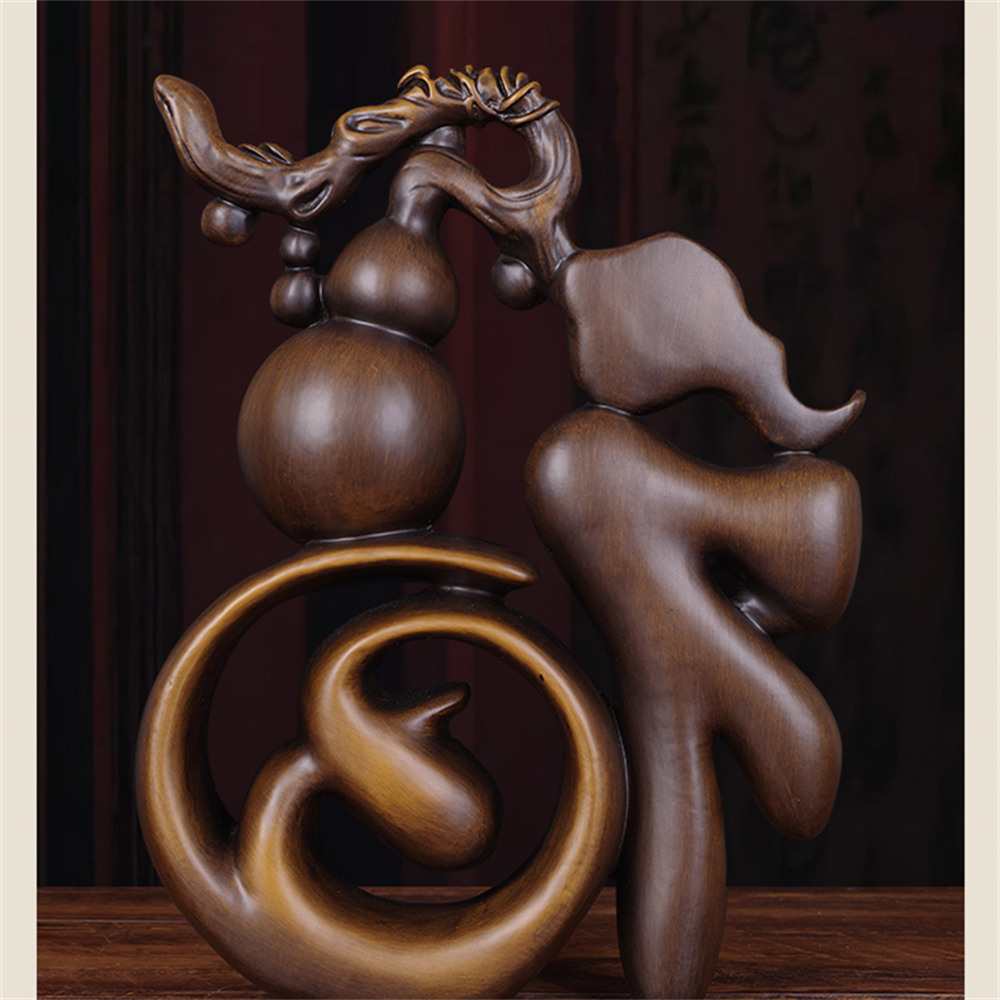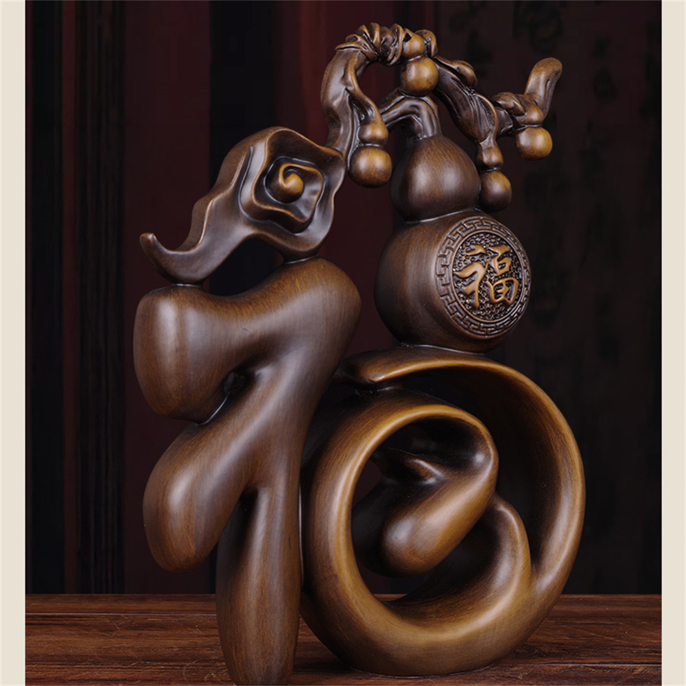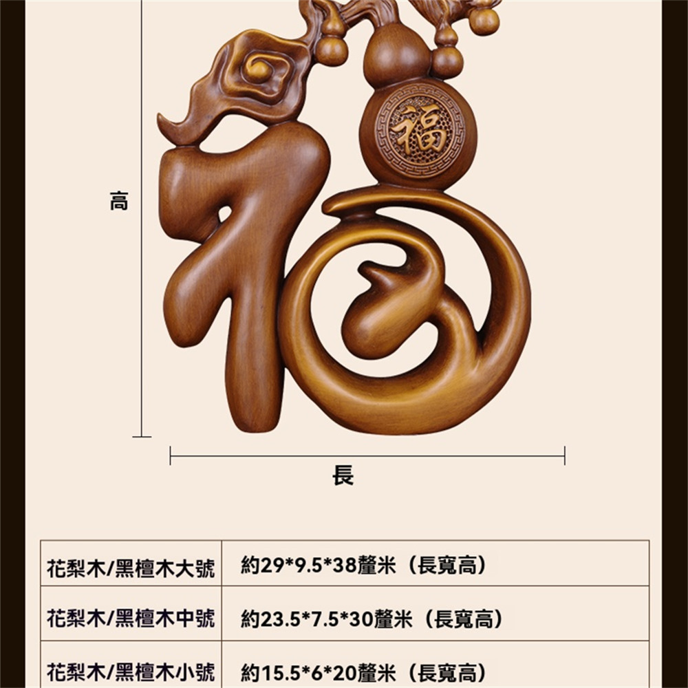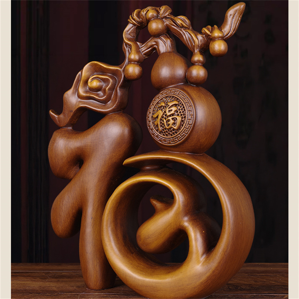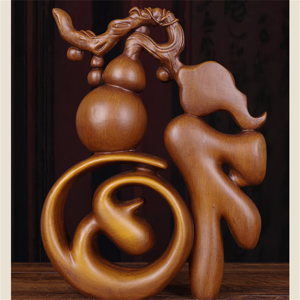 【超微米】實木雕 福字葫蘆擺件 梨木福氣臨門裝飾品 客廳玄關酒櫃擺飾 喬遷禮物(福字葫蘆擺件20cm)