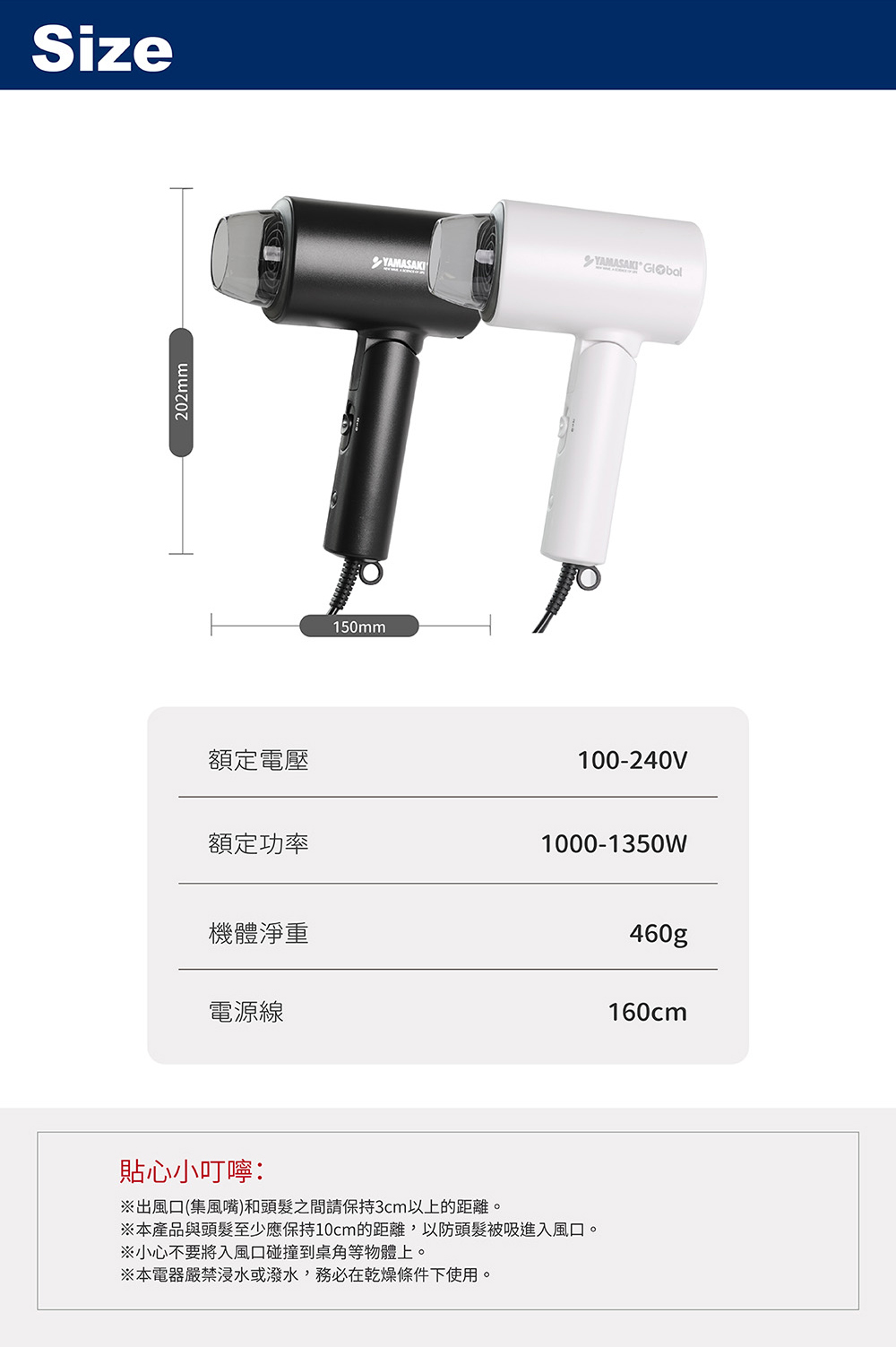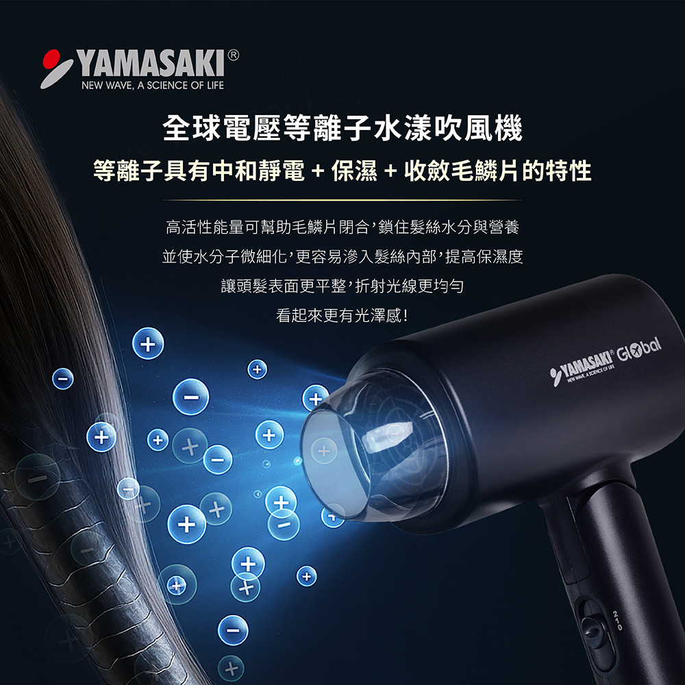 全球通用寬電壓設計,自動辨識,隨插即用等離子水潤髮絲科技:可讓髮絲更順滑、表面形成水膜,能徹底消除靜電,雙倍潤澤!