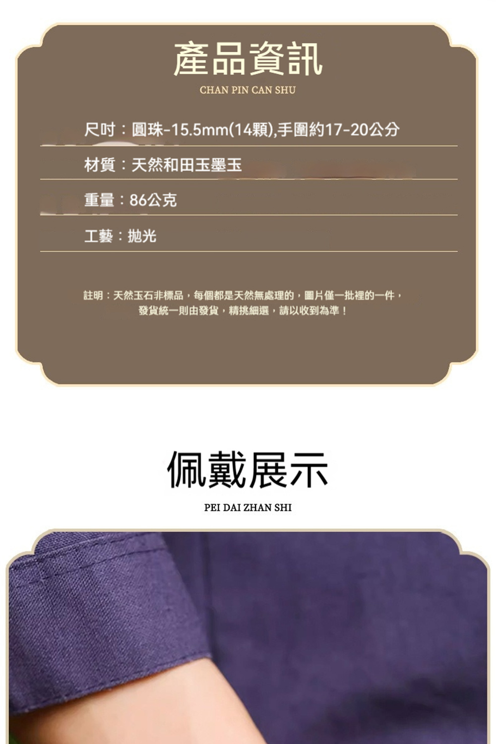 ✨ 商品尺吋:圓珠-15.5mm(14顆),手圍約17-20公分
