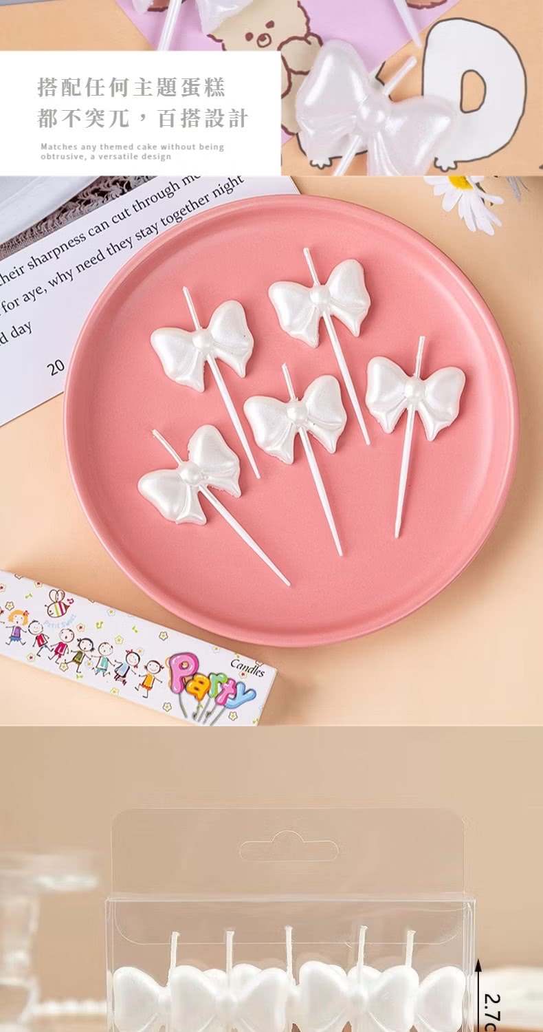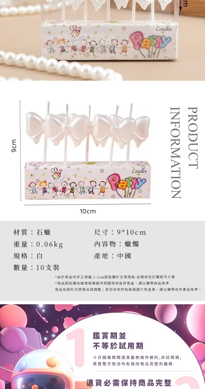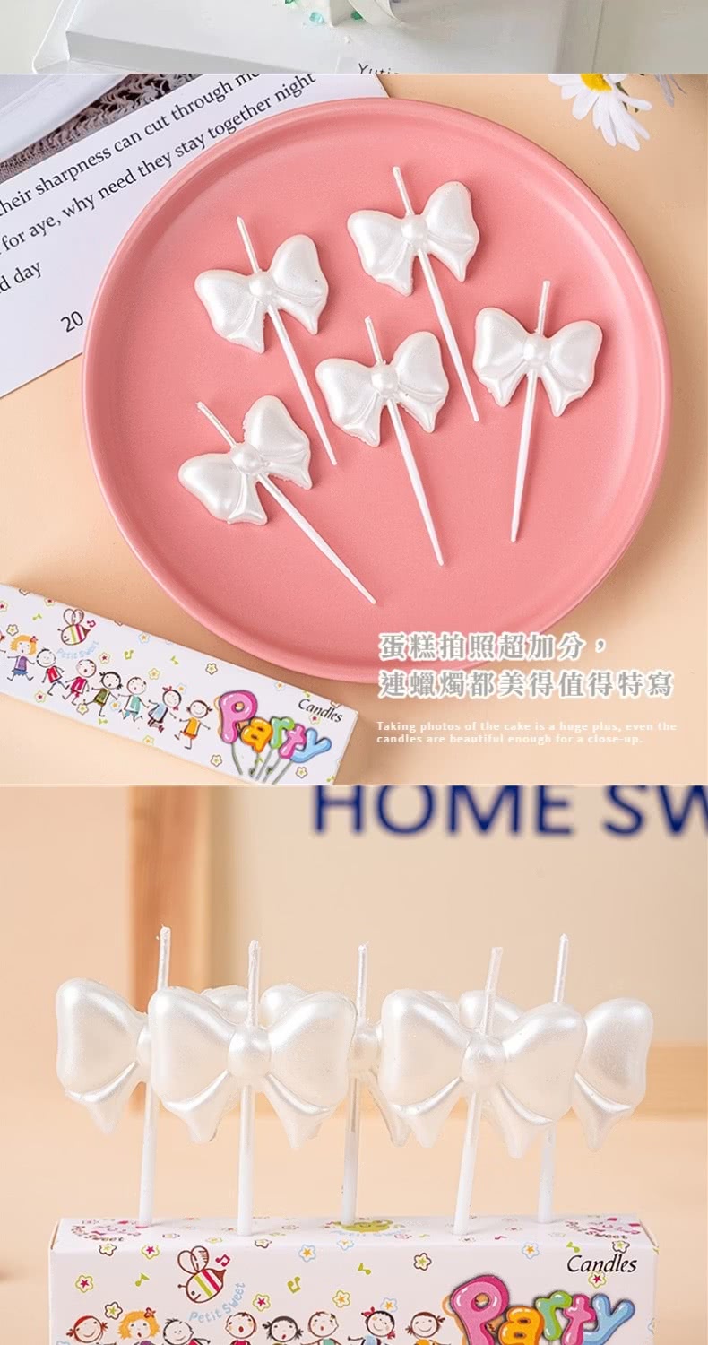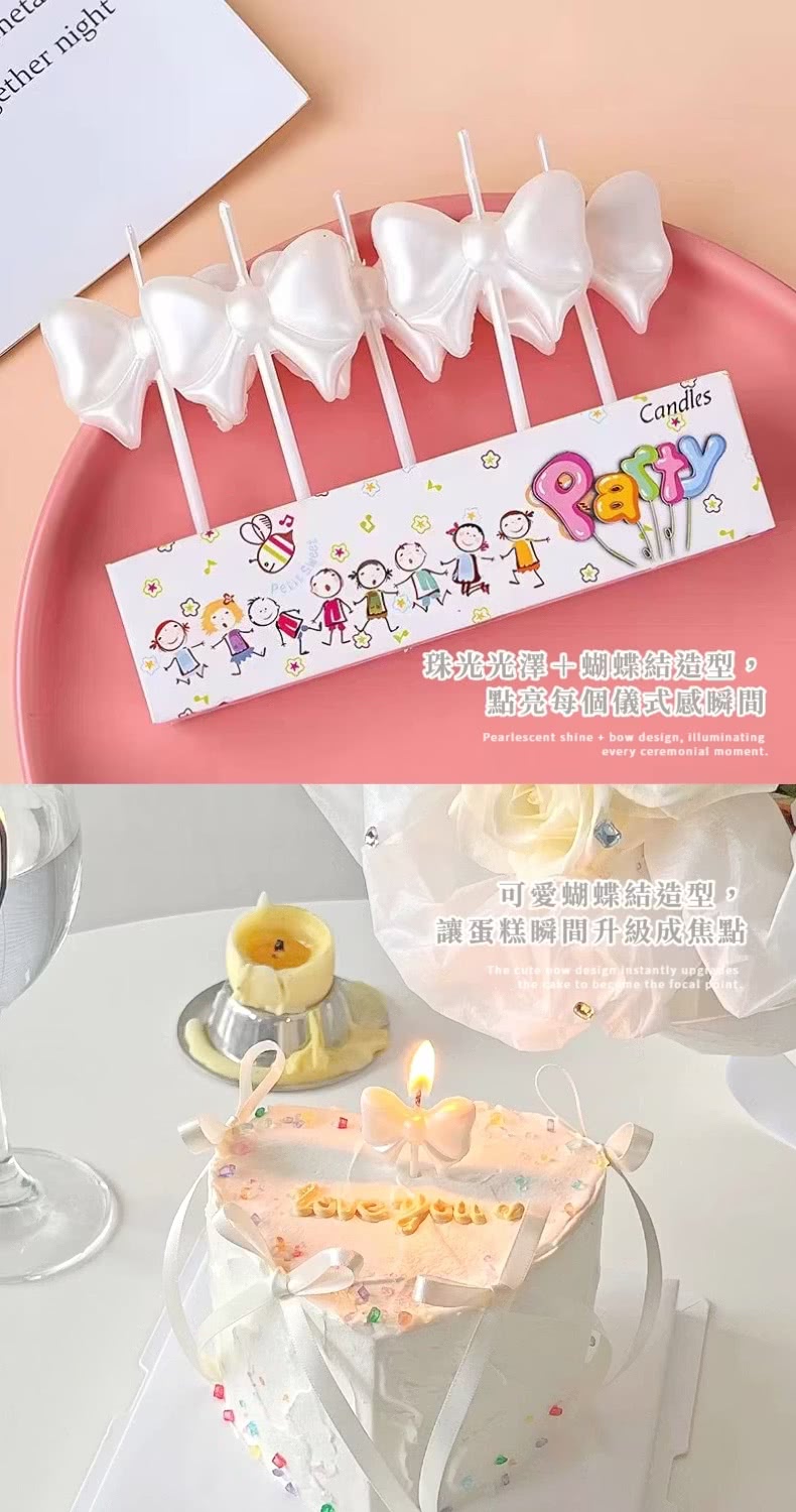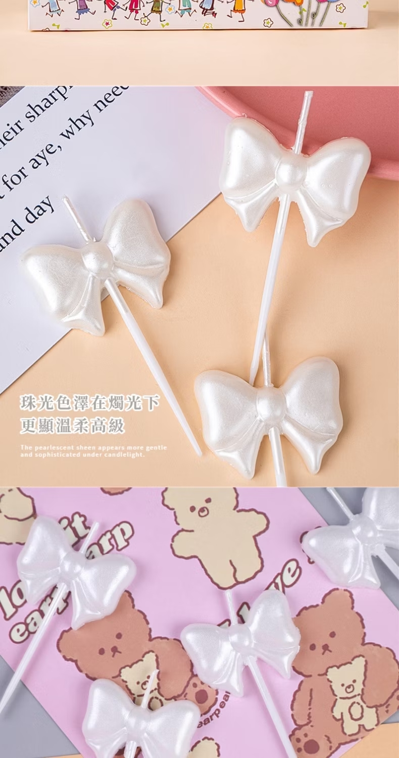 【仙女公主】珠光蝴蝶結蠟燭10支裝(唯美 夢幻 生日蠟燭 蛋糕 派對 慶生 節日 節慶 萬用蠟燭 造型蠟燭)