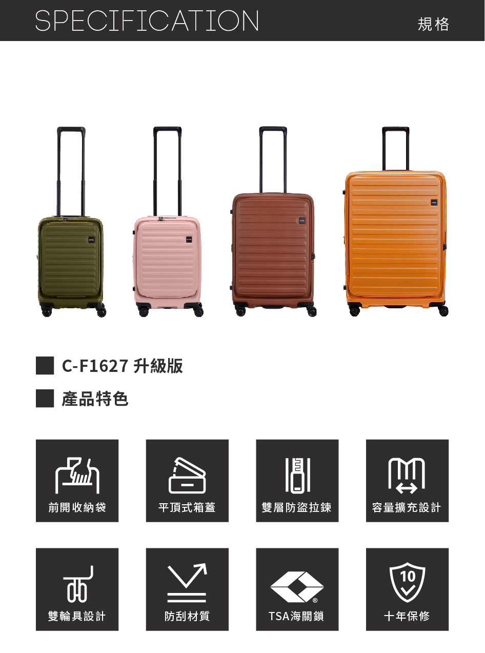 【LOJEL】CUBO 21吋 嫩粉色 前開式擴充拉鍊拉桿箱(行李箱 旅行箱 登機箱)