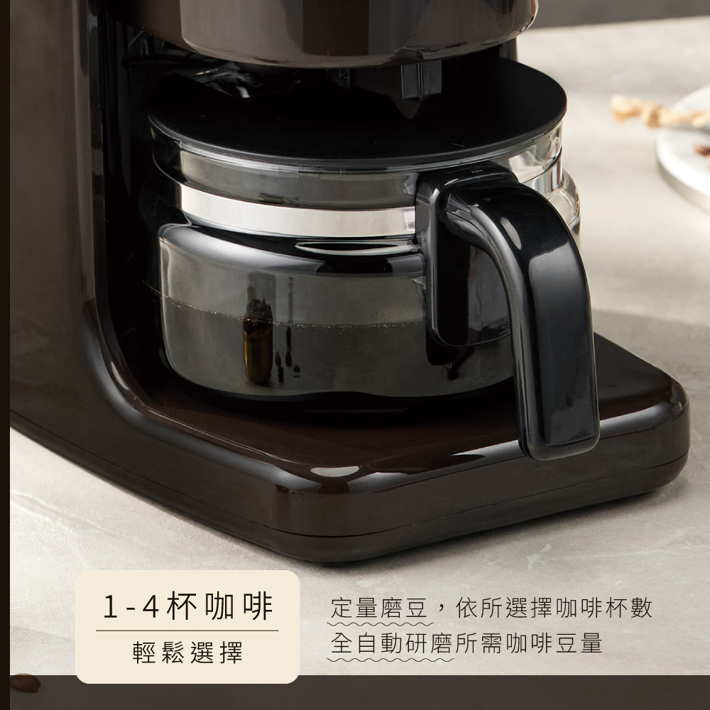 定量磨豆,依所選擇咖啡杯數研磨所需咖啡豆量