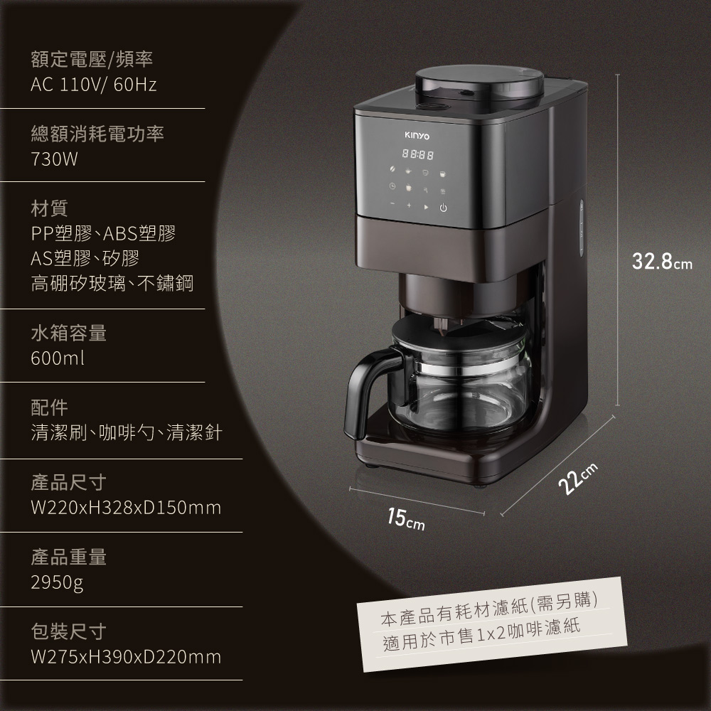 【KINYO】全自動美式錐刀研磨咖啡機(CMH8250)
