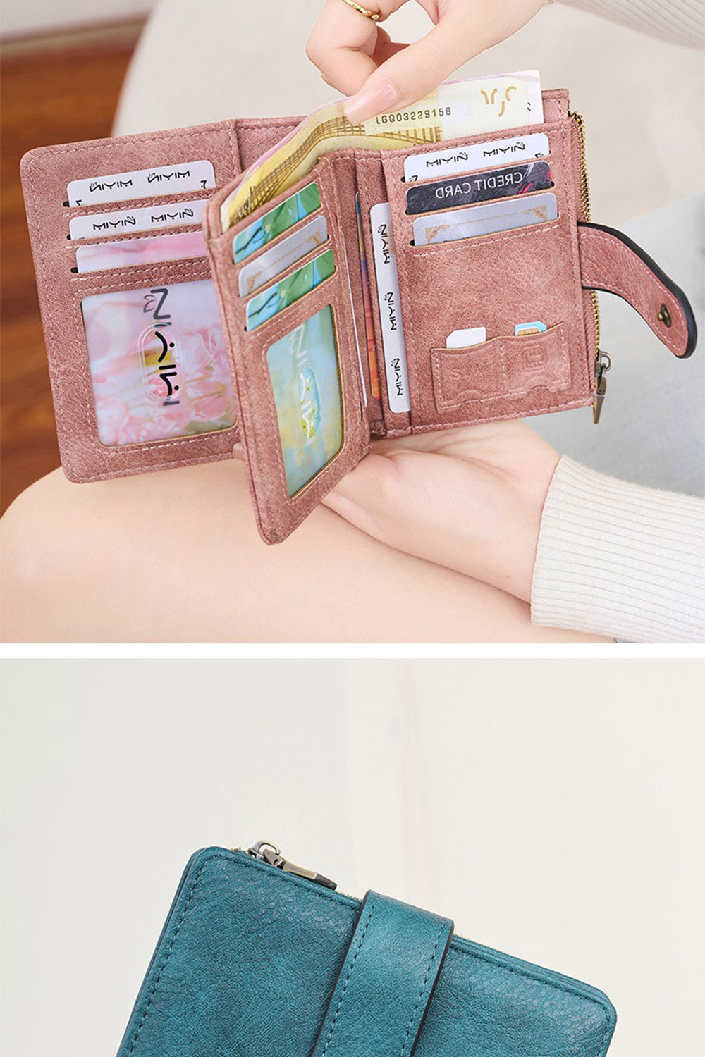 👜結構:鈔票位*1+照片位*3+拉鍊袋*1+卡位*9+SIM卡位*2+隔層*7+隔層內貼袋*1