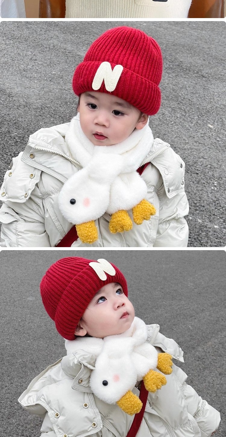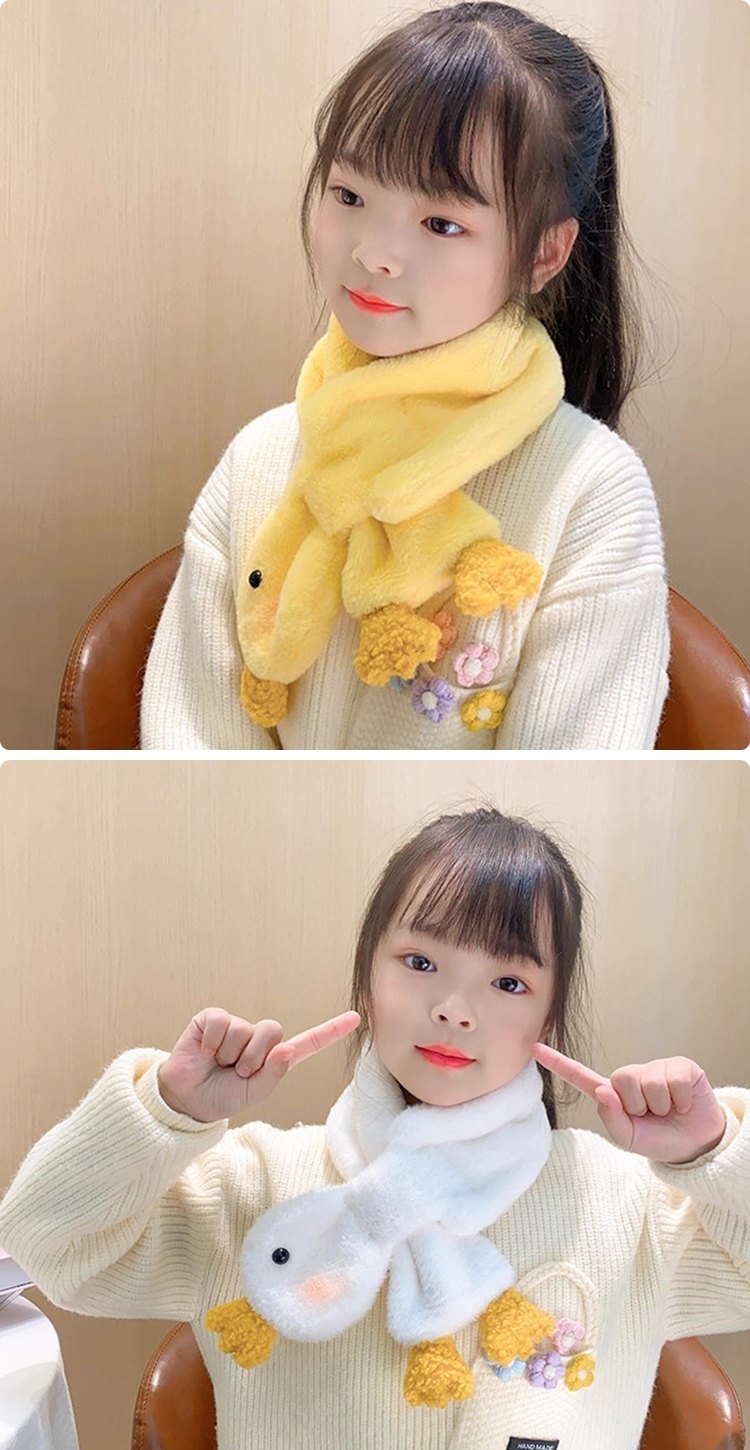 【童話飾界】冬季限定 可愛小鴨鴨 保暖加絨加厚親子款-兒童圍巾圍脖(黃色小鴨鴨)
