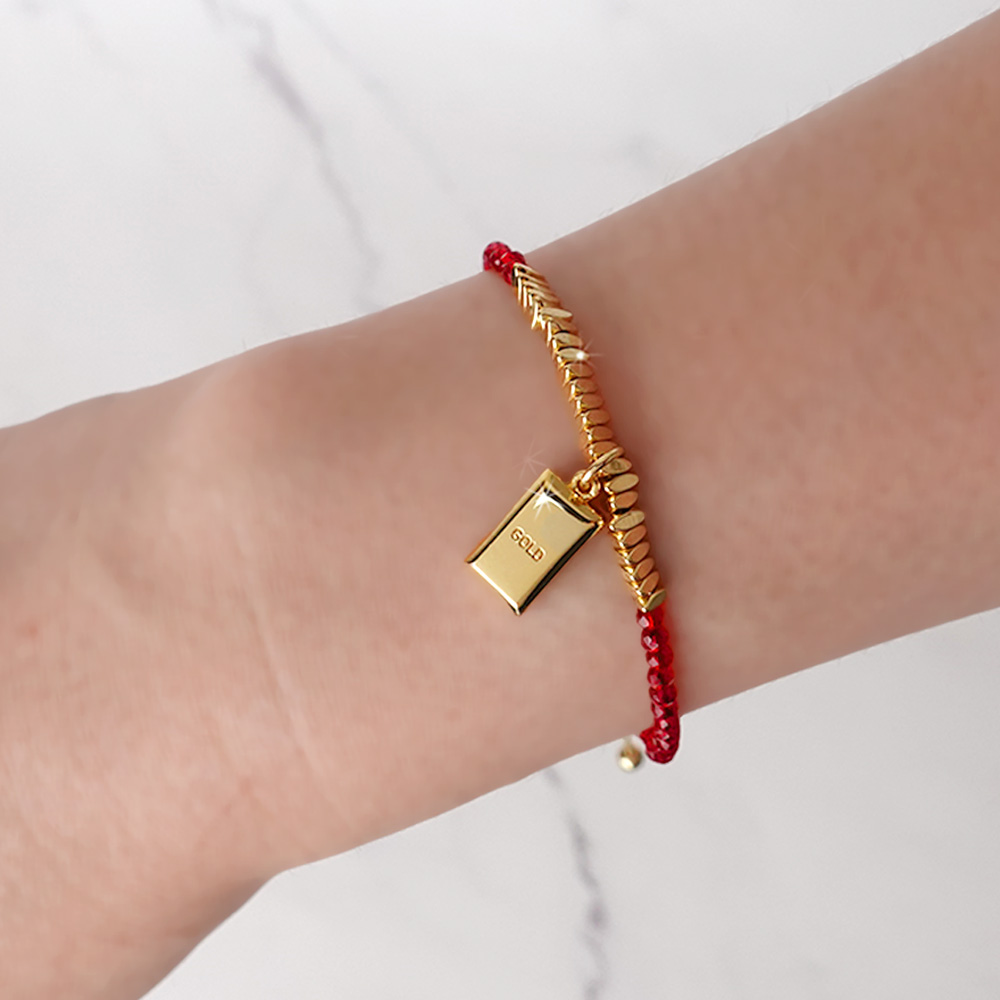 黃金磚紅晶線手鍊|紅線傳承 × 時尚升級