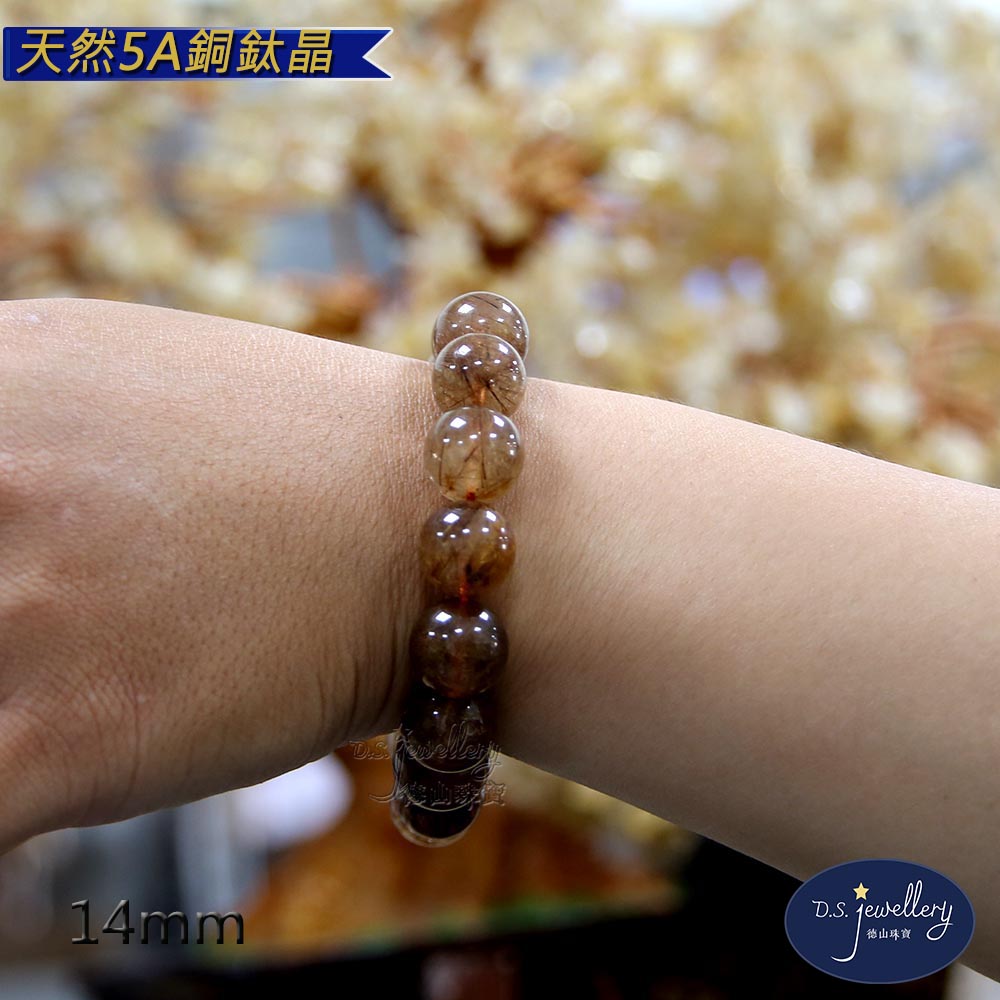 【德山珠寶】天然5A級14mm銅鈦晶水晶手鍊(CE476)