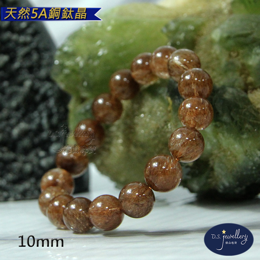 【德山珠寶】天然5A級10mm銅鈦晶水晶手鍊(CE476)