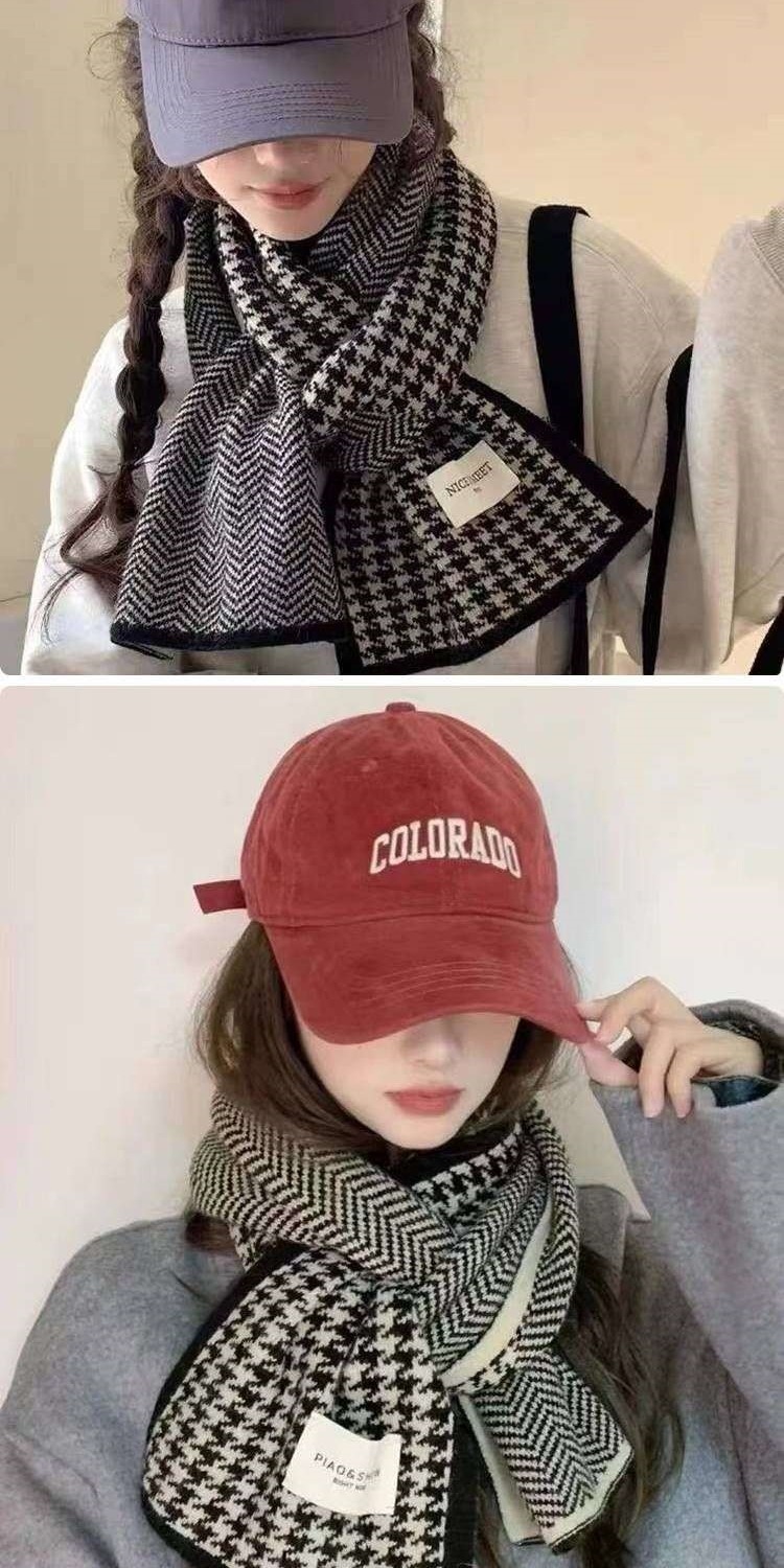 【NDM 南大門】百搭情侶款 針織保暖加厚千鳥格雙面設計 防風男女圍巾圍脖披肩(優雅黑)