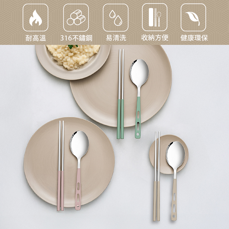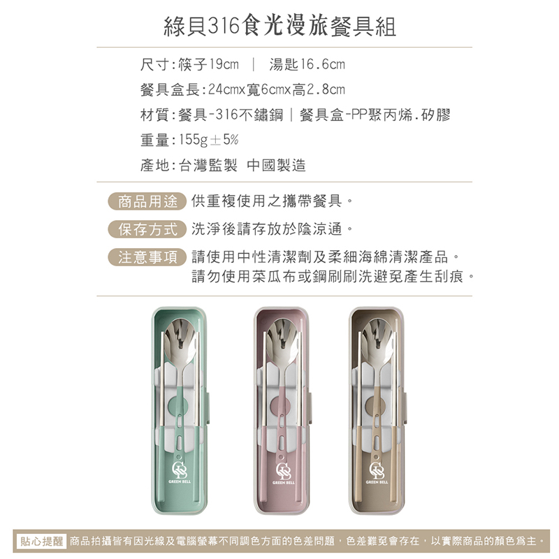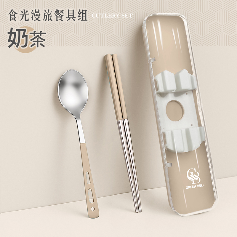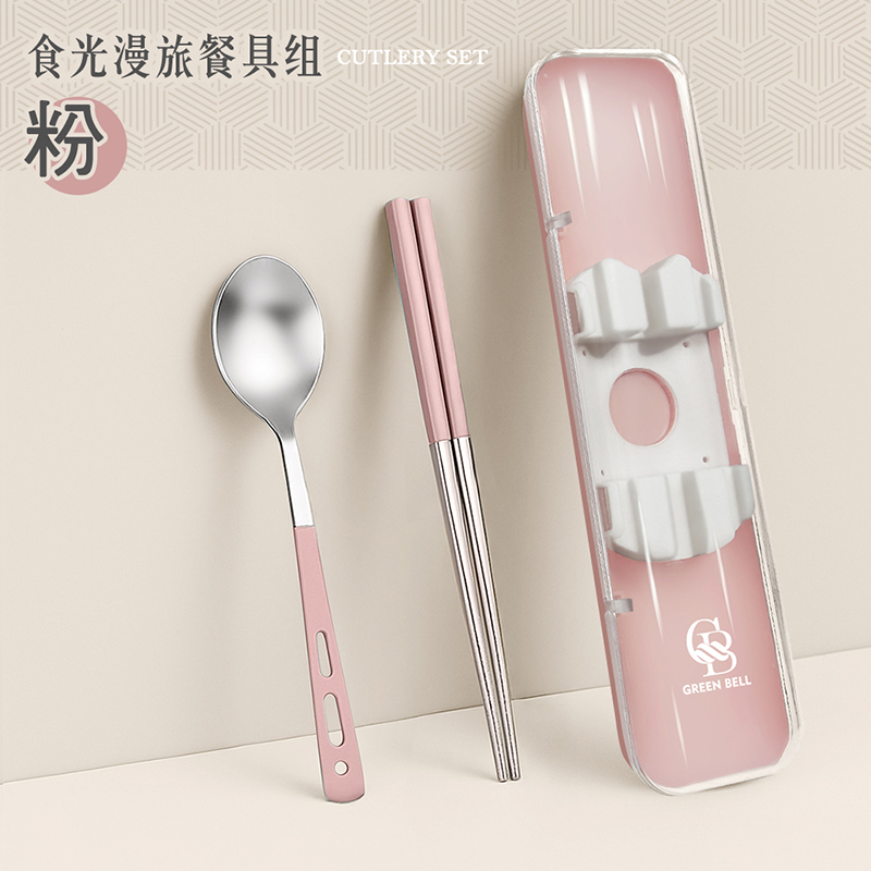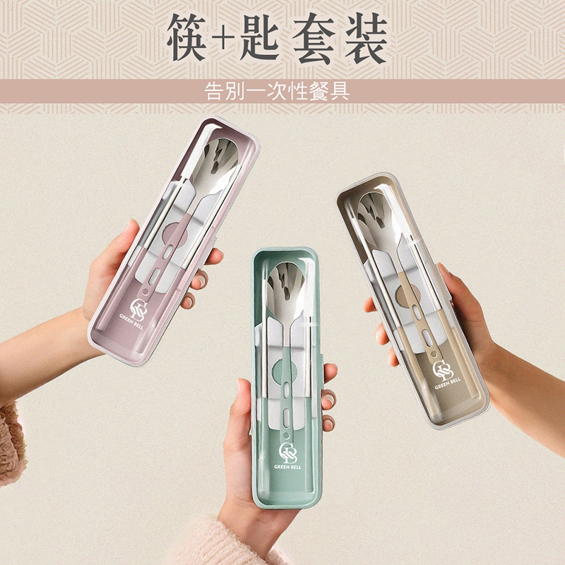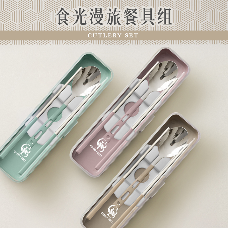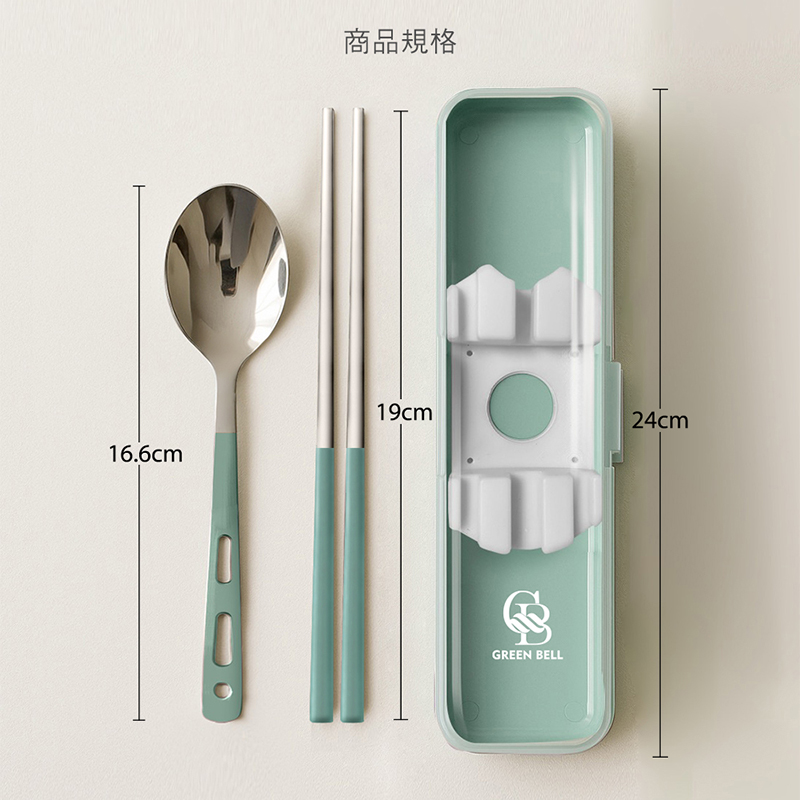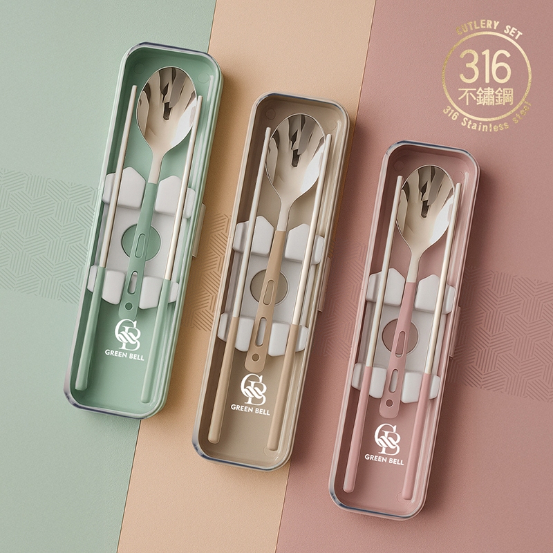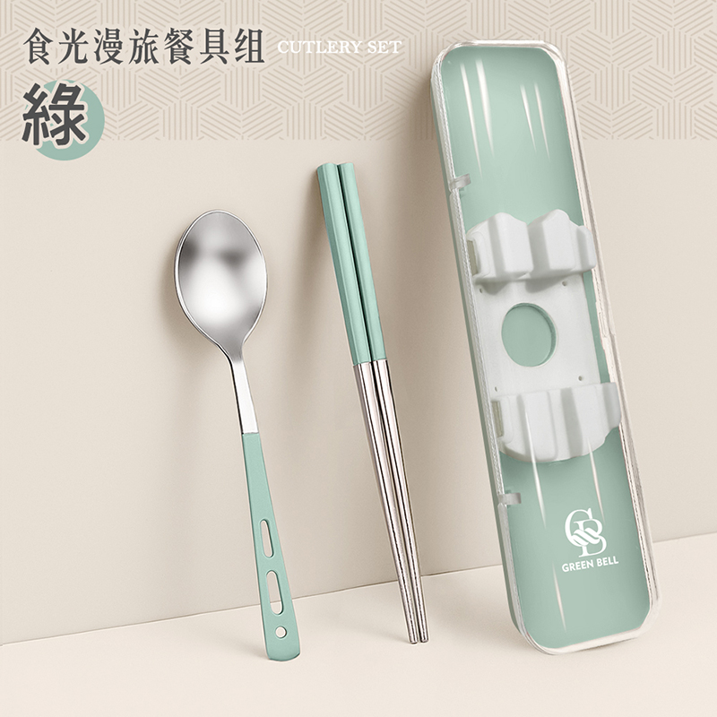 【GREEN BELL 綠貝】316食光漫旅餐具組-2入組(含筷子/湯匙/收納盒 耐摔 耐用 隔熱防燙)
