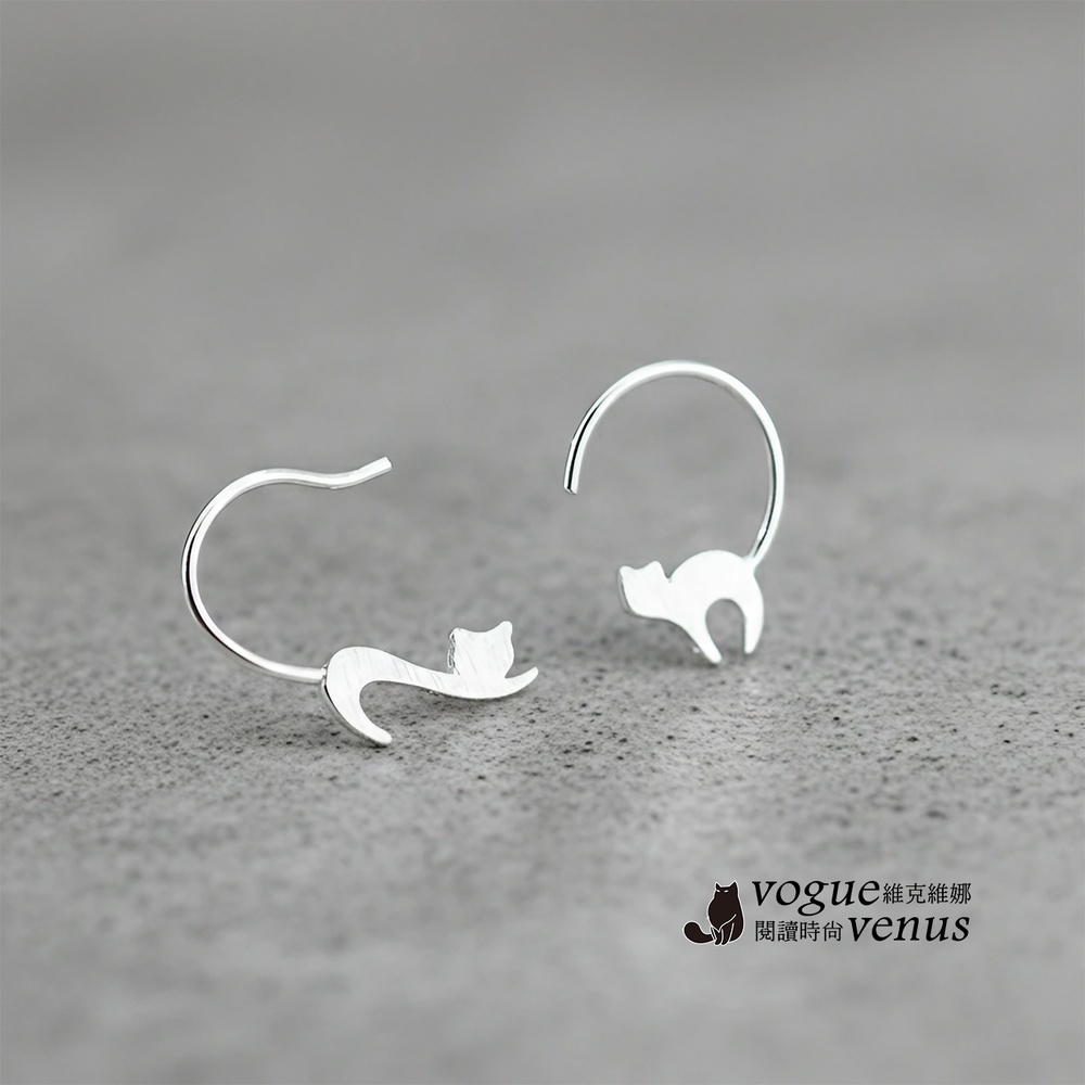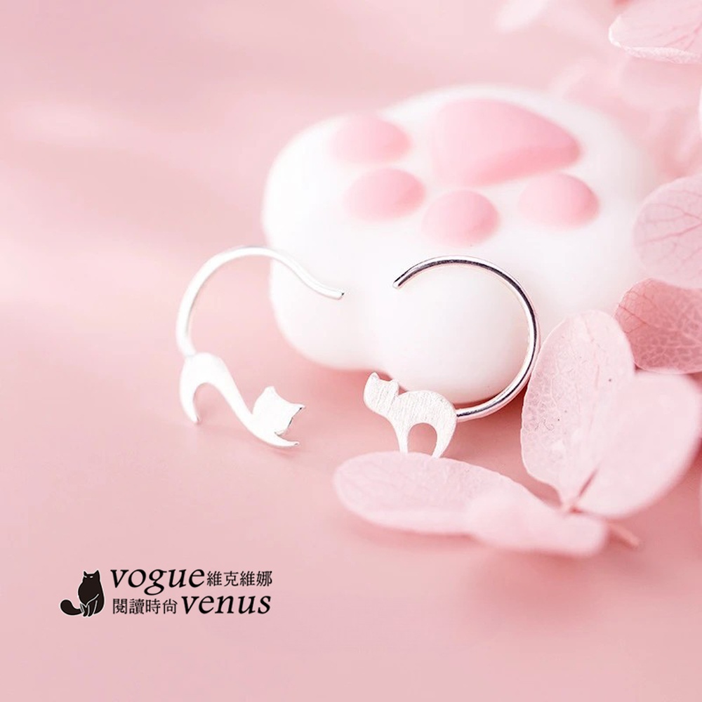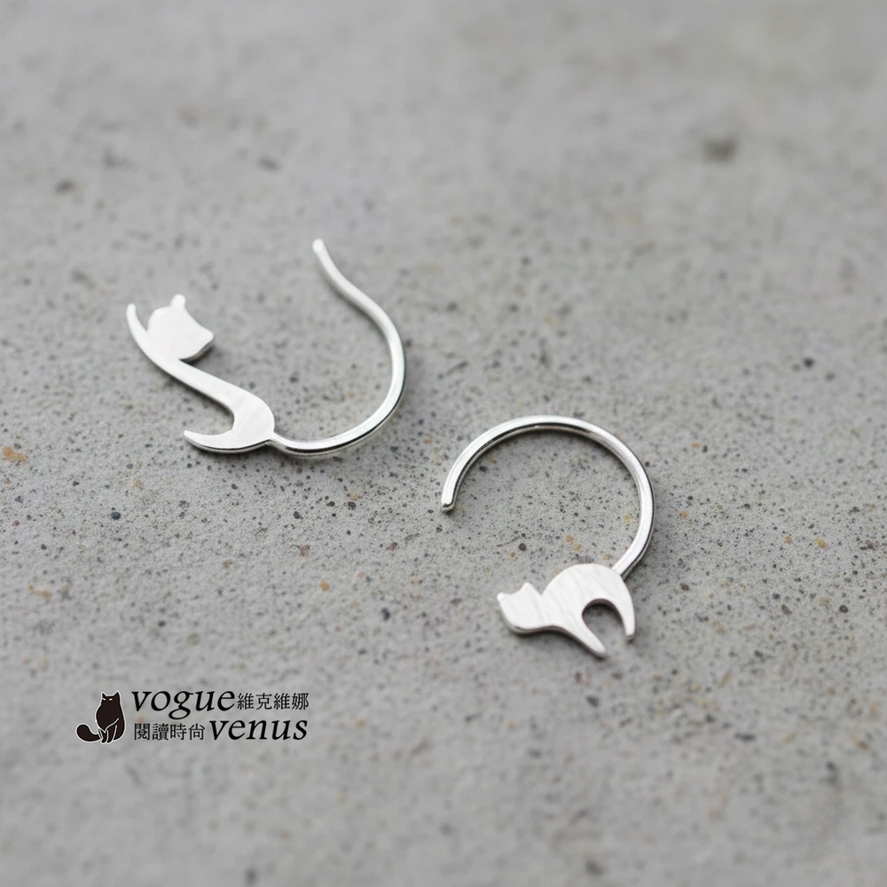【維克維娜】不對稱貓咪霧銀925純銀耳環