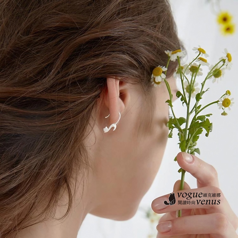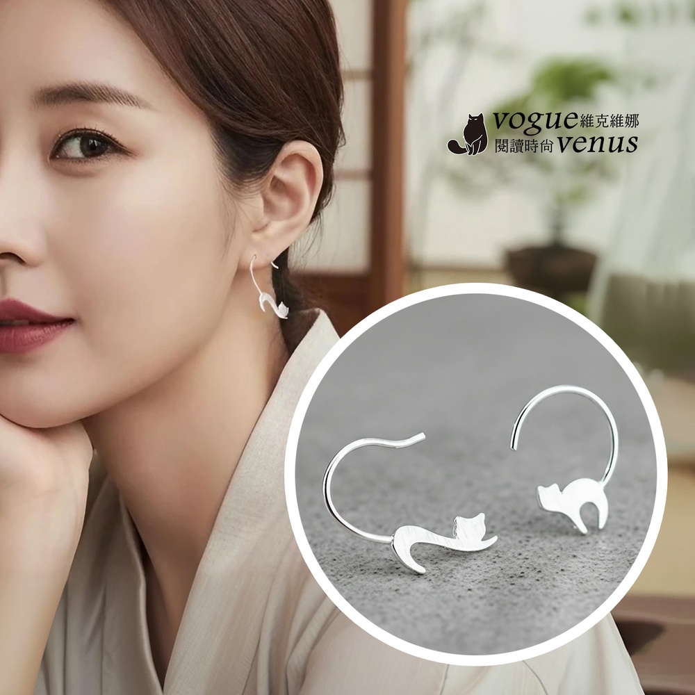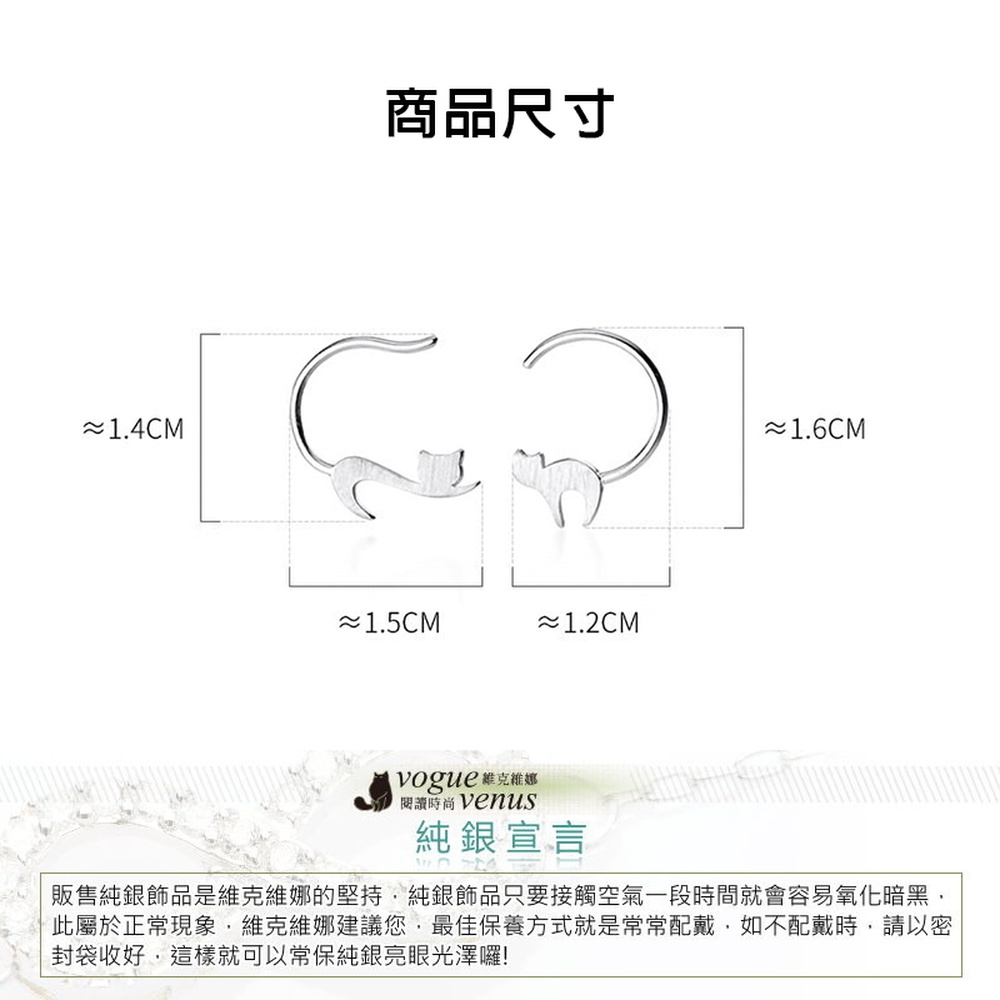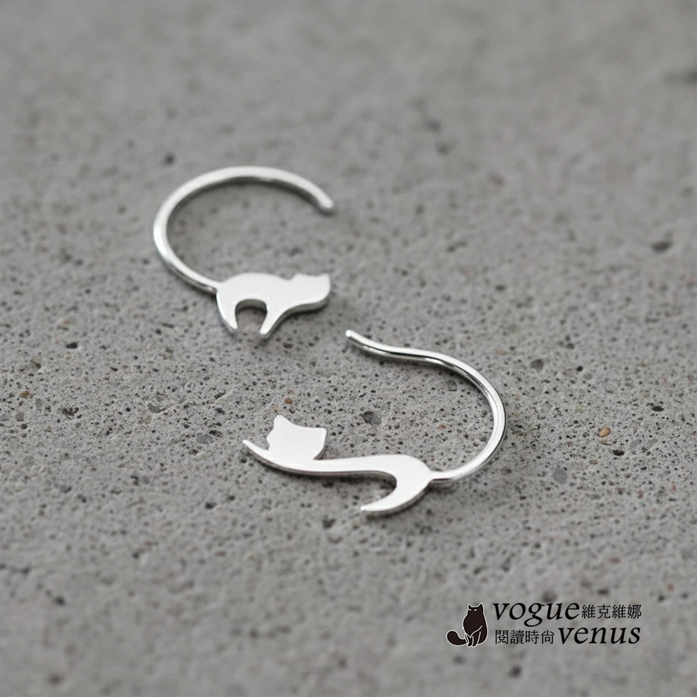 【維克維娜】不對稱貓咪霧銀925純銀耳環