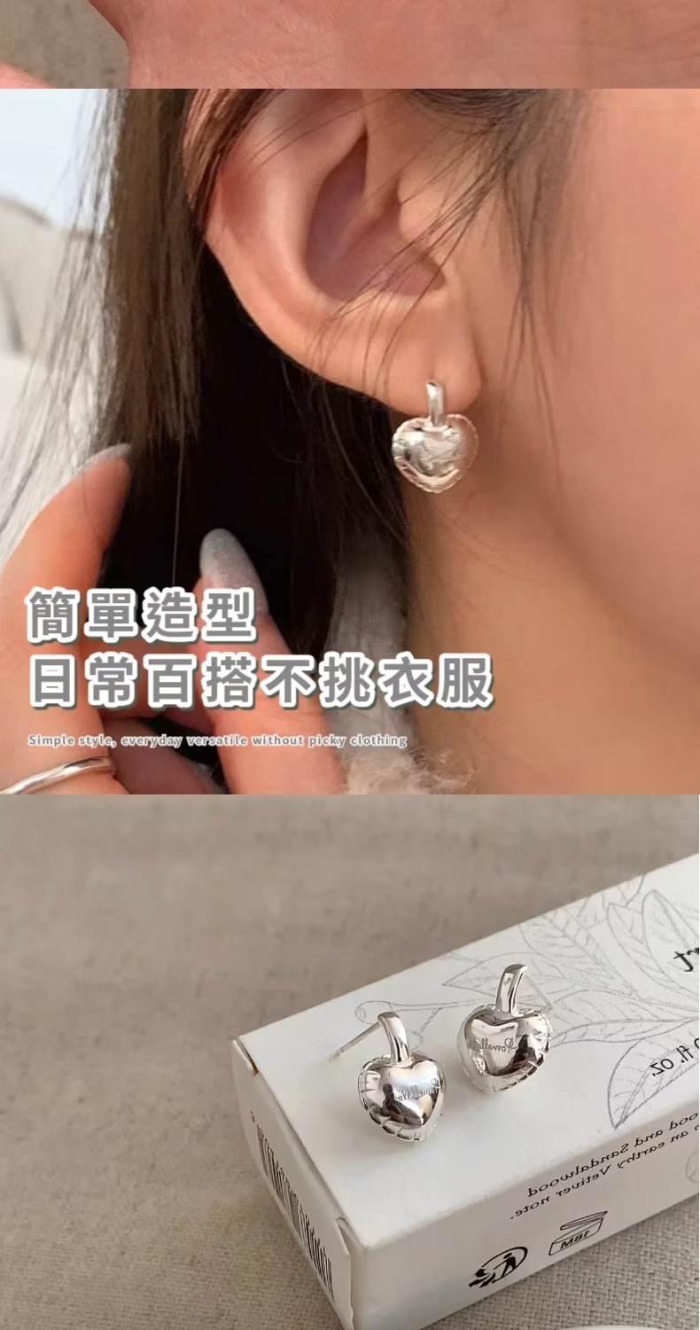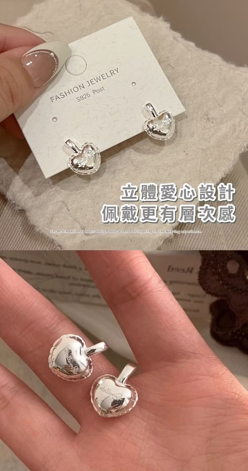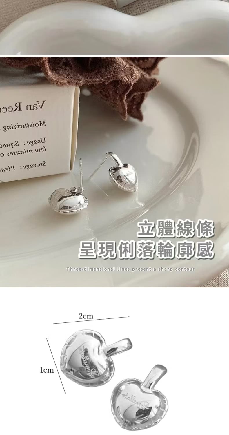 【胖嘟嘟】立體愛心耳環1對(字母 垂墜 綴飾 飾品 耳飾 耳釘 耳針 耳扣 首飾)