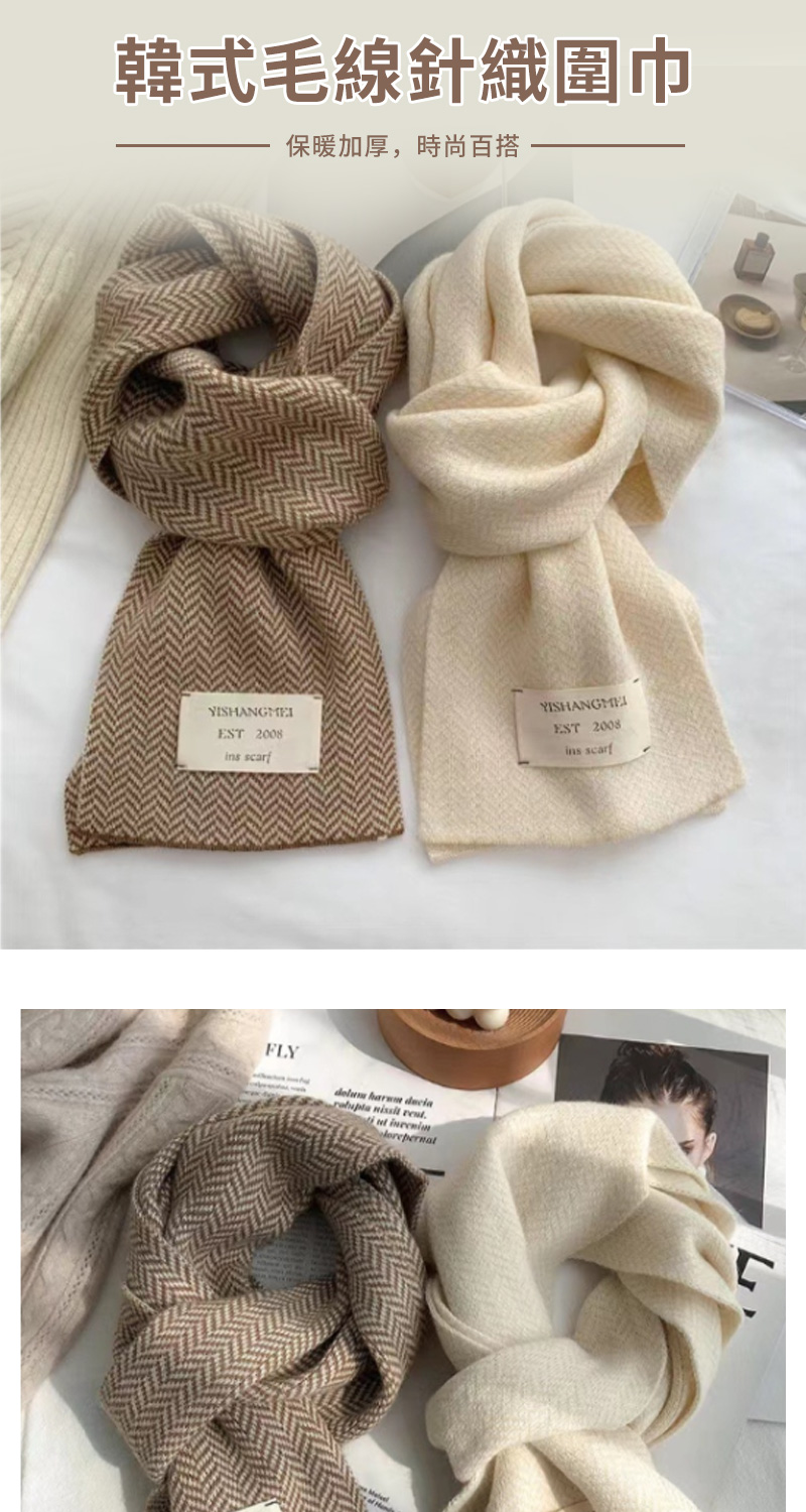 【GAPE】韓版冬季毛線針織圍巾 ins保暖加厚純色圍巾 學生百搭保暖圍脖 情侶圍巾 保暖披肩 防寒防風禦寒鎖溫