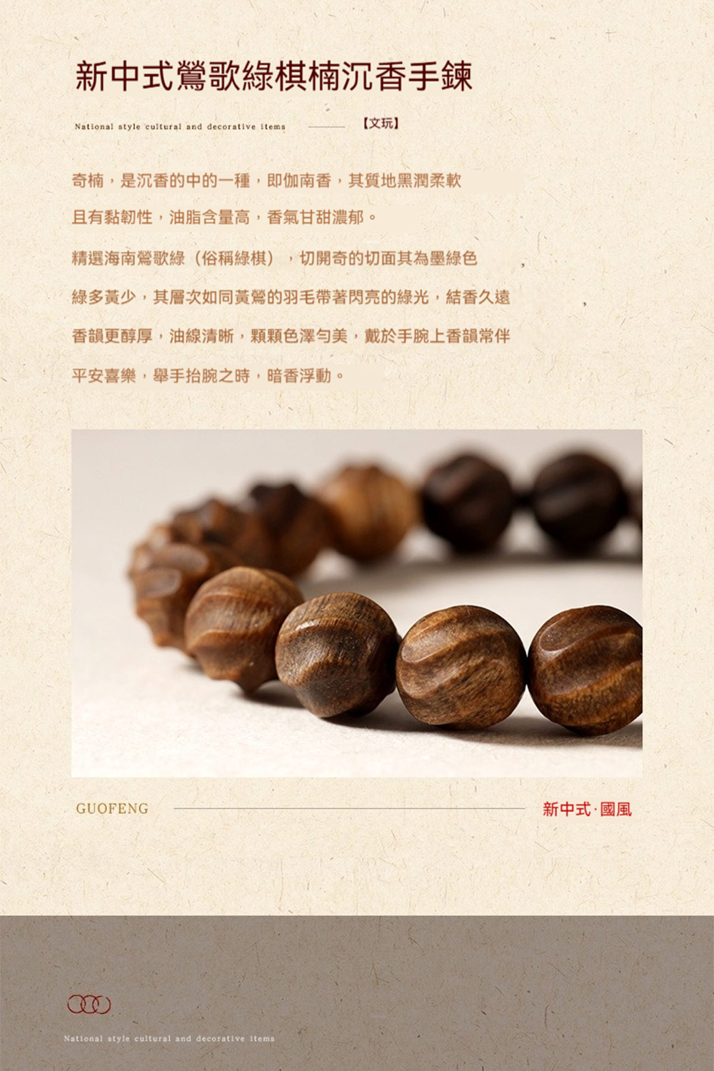【LEEHER】綠奇楠沉香手串/文玩/素圈手飾/扭轉乾坤單圈手鍊/新中式飾品/配飾