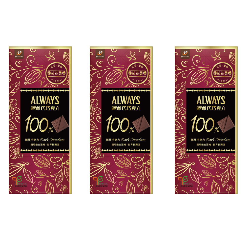 【77】歐維氏極致醇黑巧克力 100%(70g x 3片)