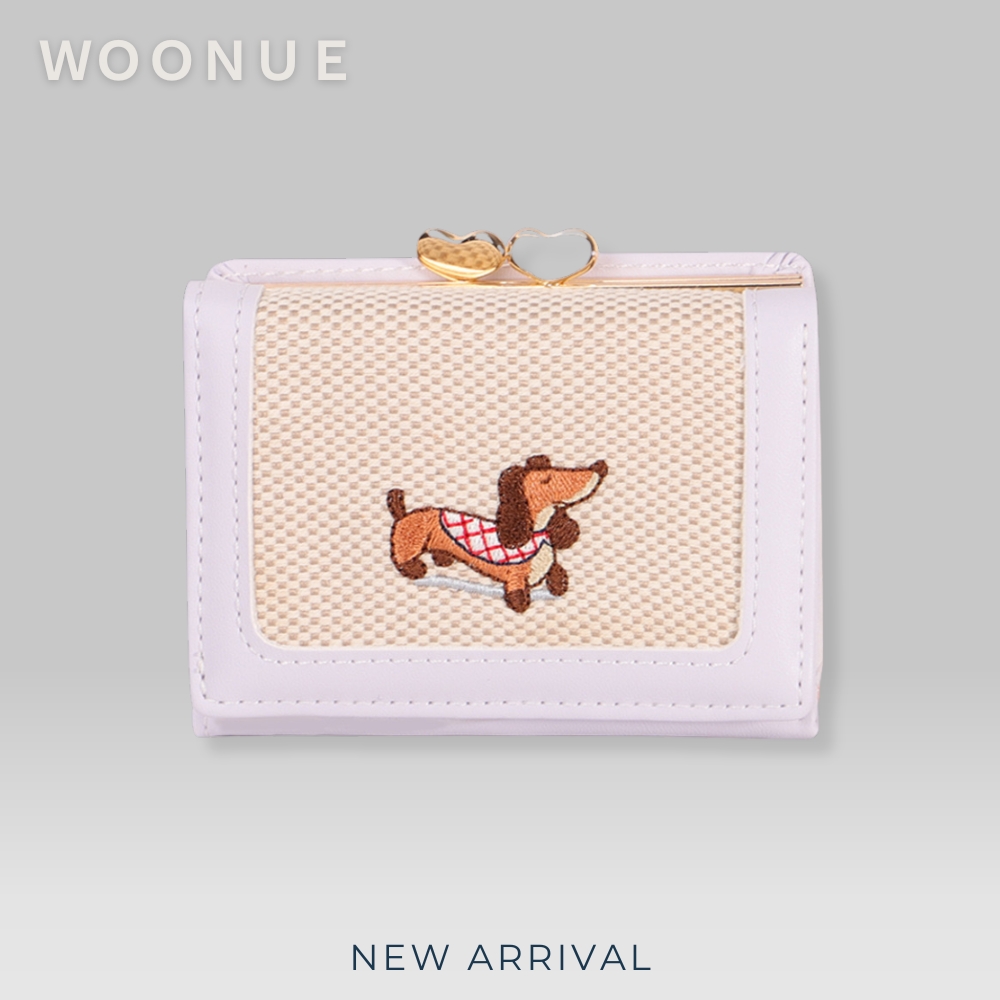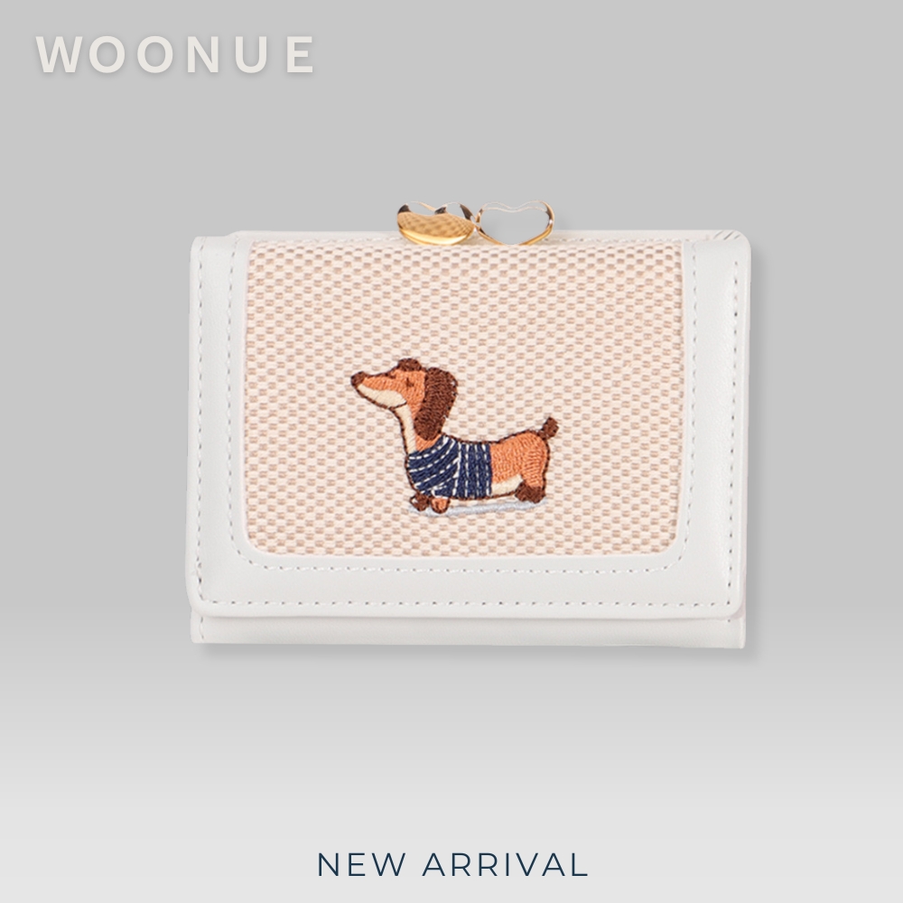 【WOONUE】氣質款臘腸狗折疊短皮夾多功能名片卡夾口金零錢包(情人老婆聖誕女兒母親生日節禮物)