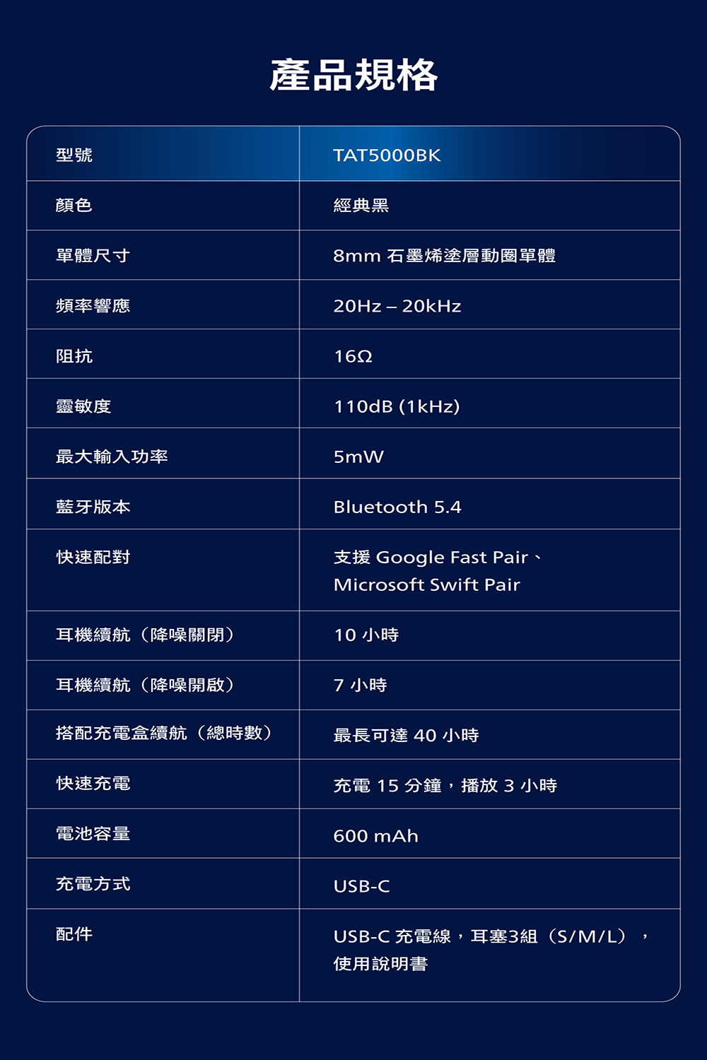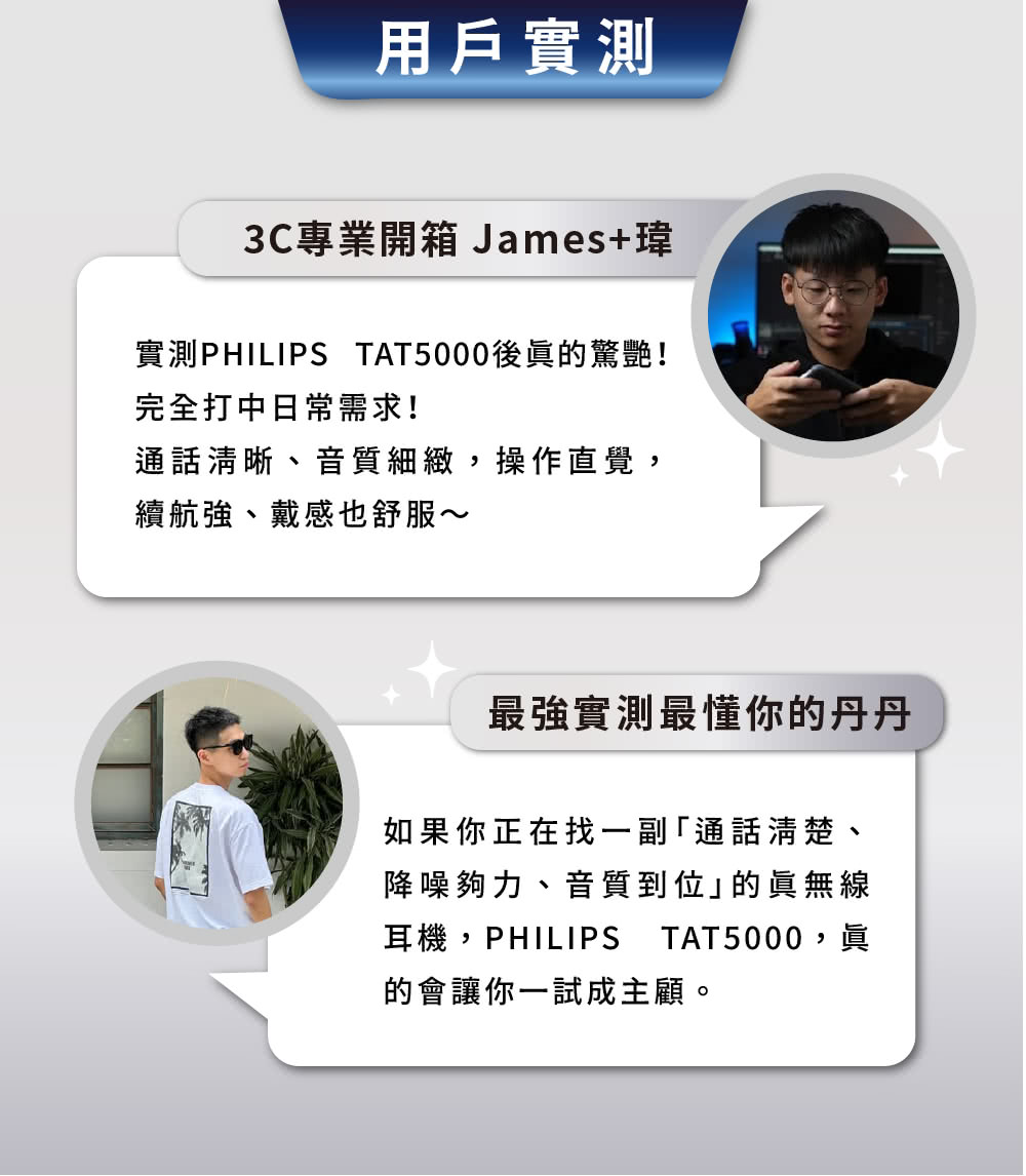 【Philips 飛利浦】TAT5000 旗艦級降噪真無線藍牙耳機(TAT5000)