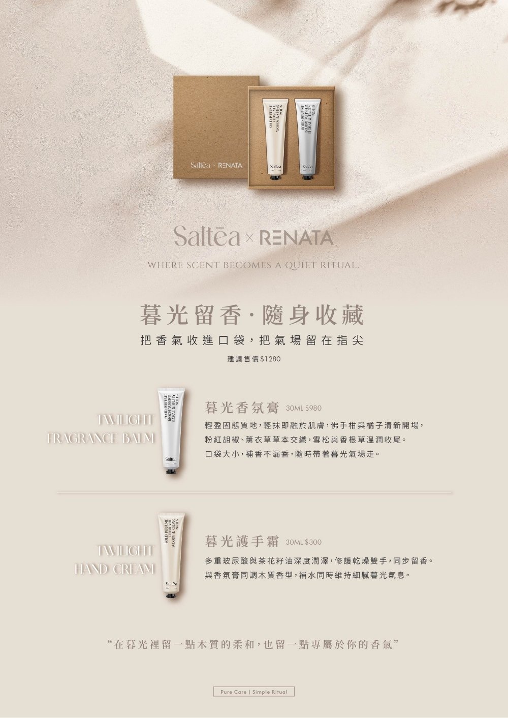 【RENATA 蕾娜塔】暮光靜謐手香禮盒(官方直營 2入禮盒 護手霜 香氛膏 木質調 送禮禮物 交換禮物)