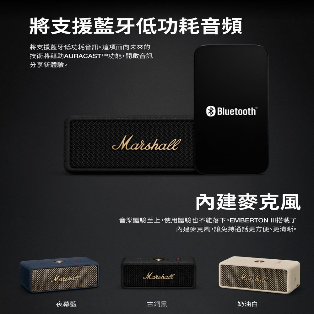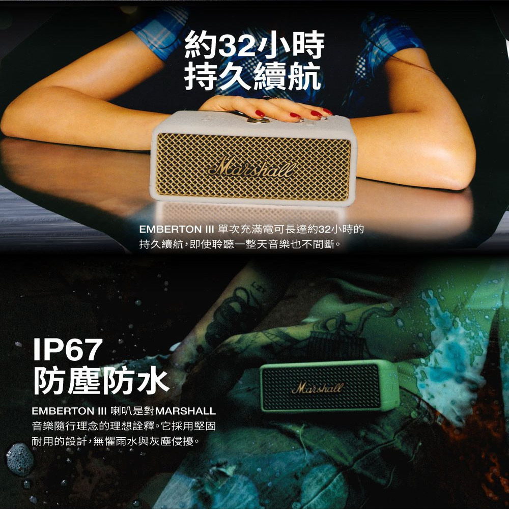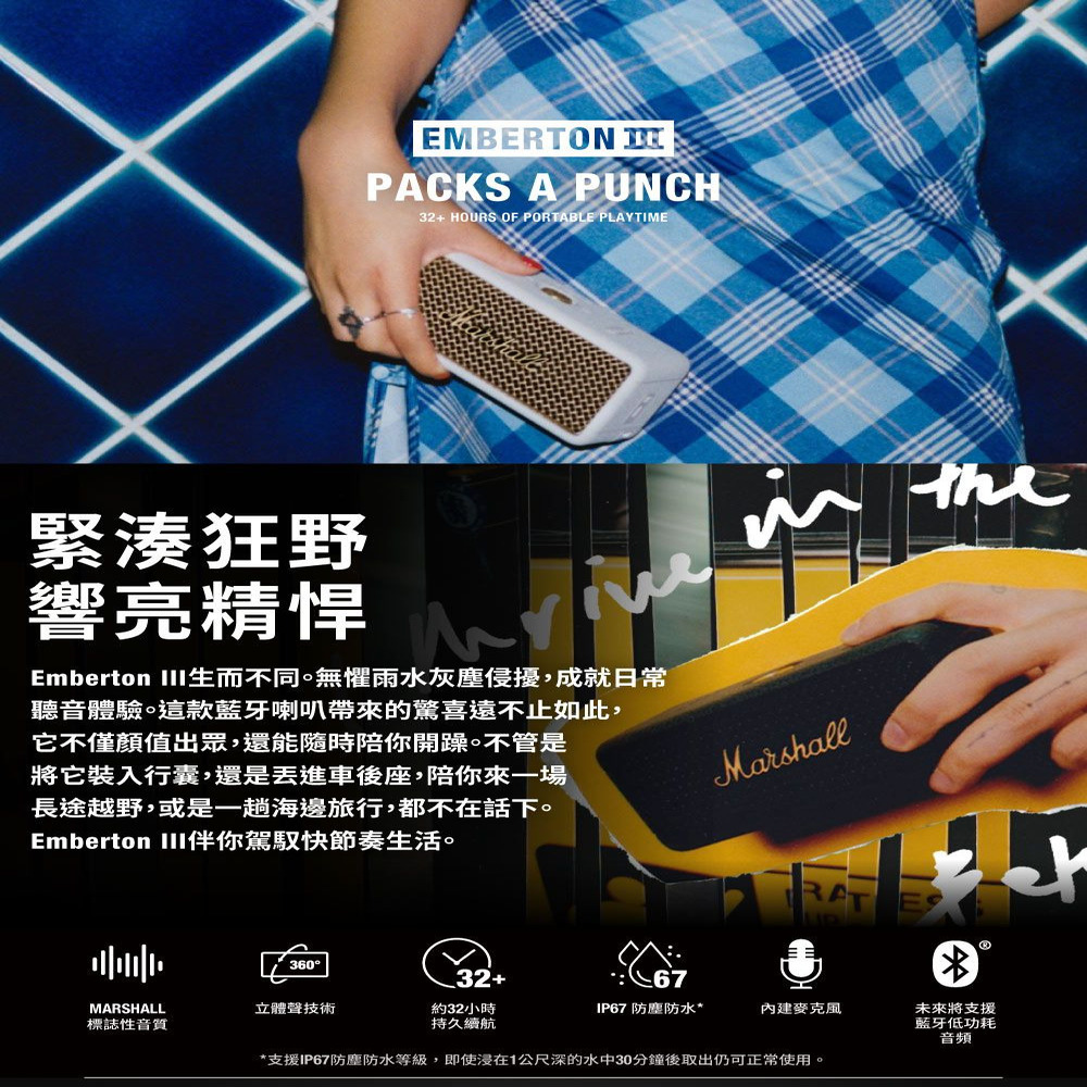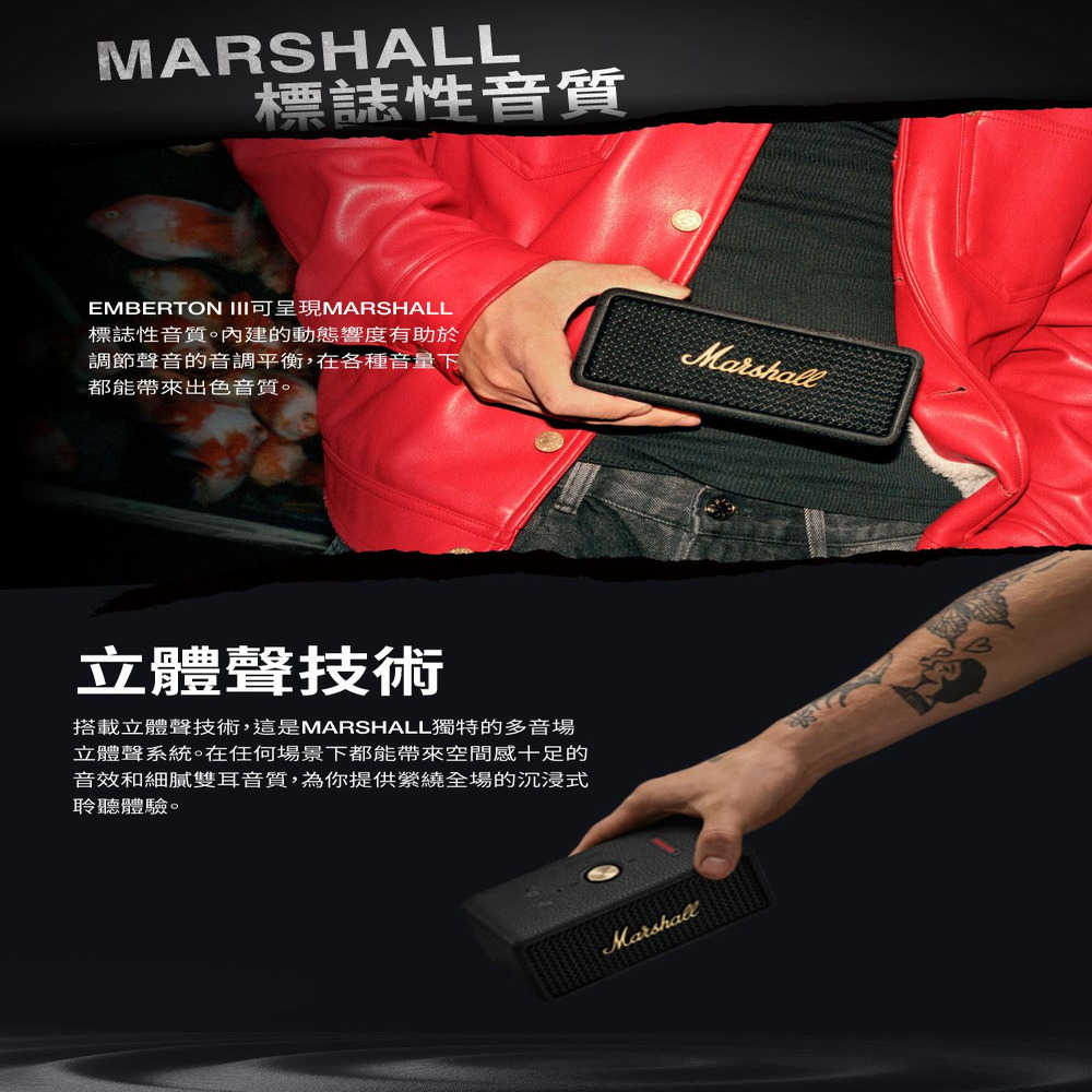 【Marshall】EMBERTON III 第三代 可攜式無線藍牙喇叭(3色可選)