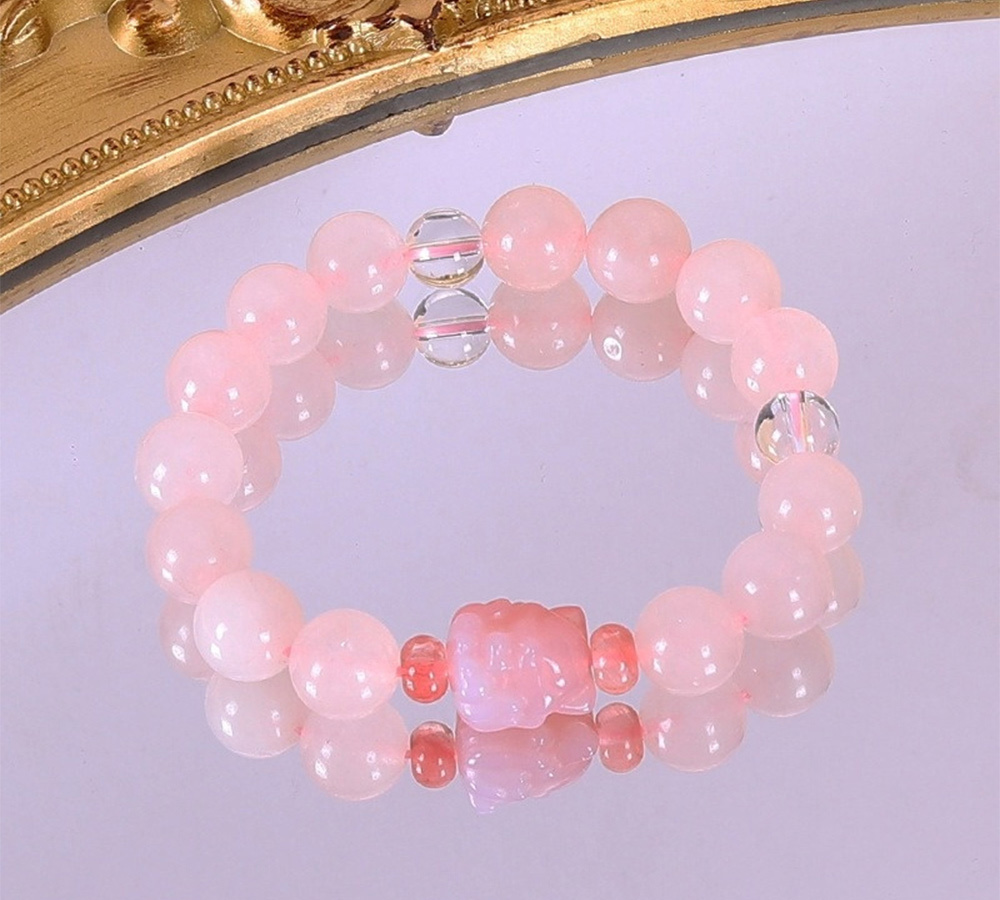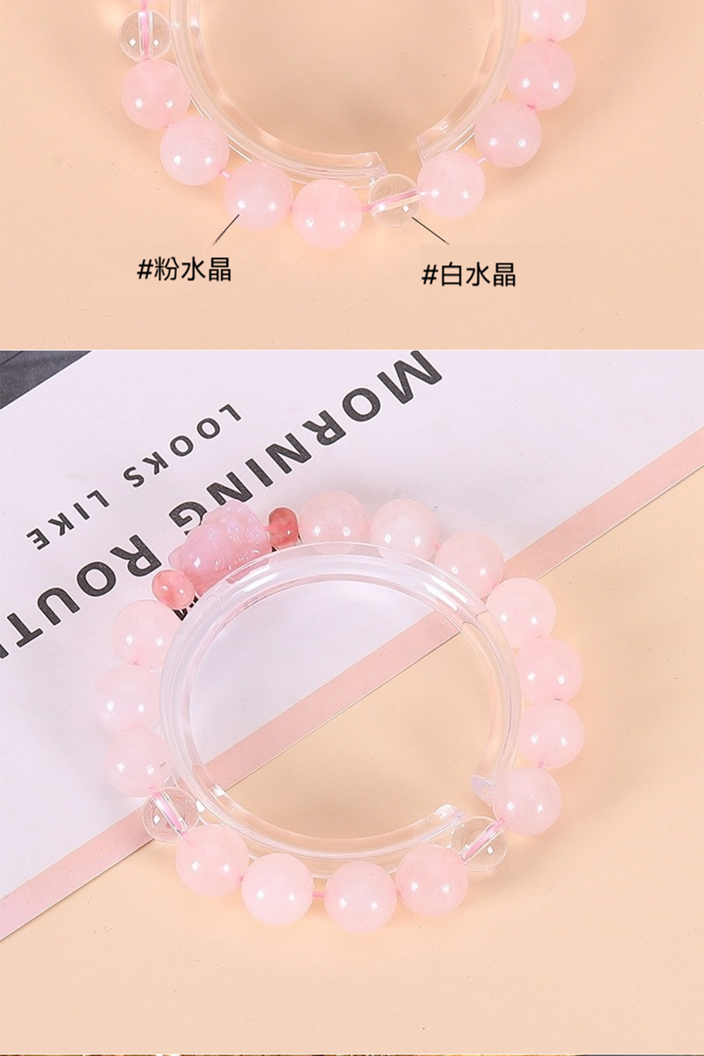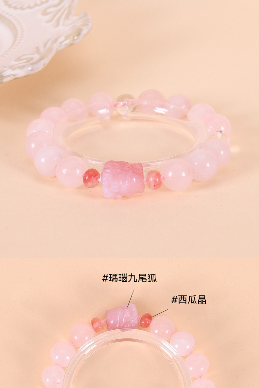 ✨ 商品尺吋:手圍約16公分(可調節),粉水晶-10mm,狐狸-12*13mm,白水晶8mm,西瓜晶6mm